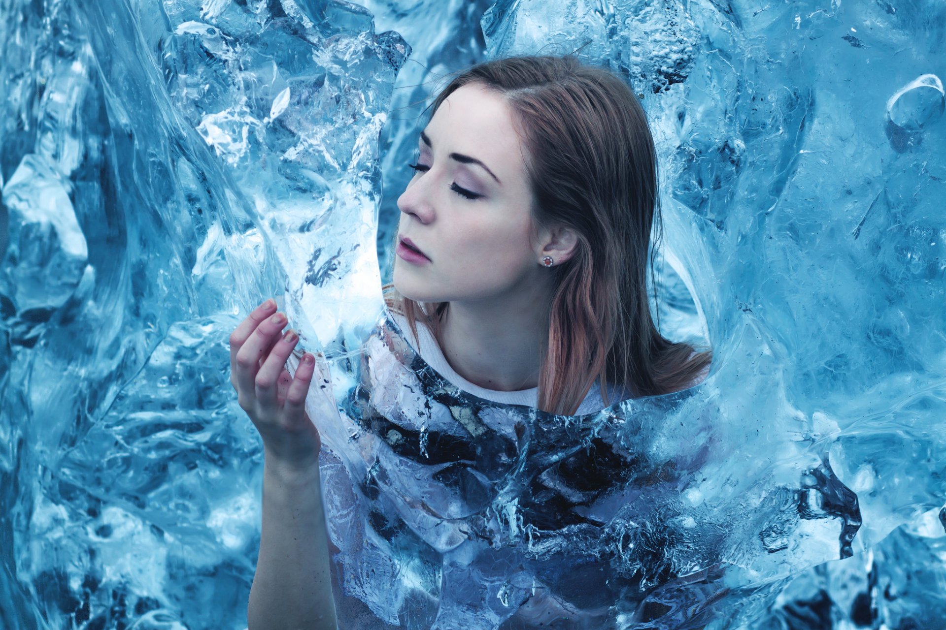 Porträt eines Mädchens mit geschlossenem Haargesicht im Wind