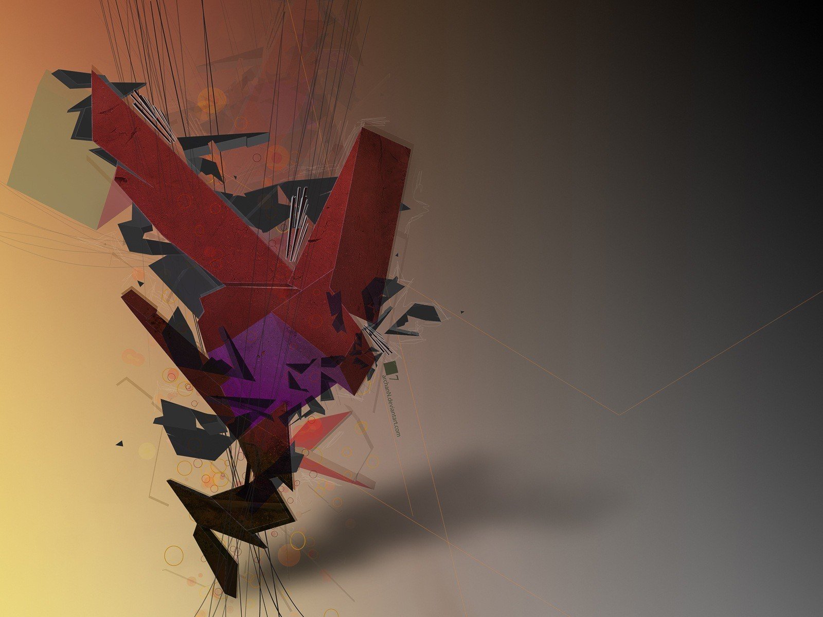 Abstrakte figur aus rotem lila und grau auf grauem gelbem hintergrundAbstrakte Figur aus rotem Lila und Grau auf grauem gelbem Hintergrund