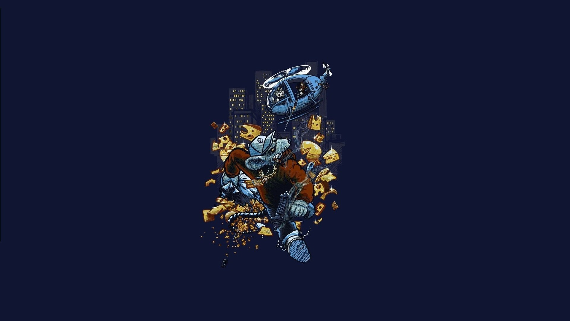 Ungewöhnliche kunsthubschrauber und maus im minimalistischen stilUngewöhnliche Kunsthubschrauber und Maus im minimalistischen Stil
