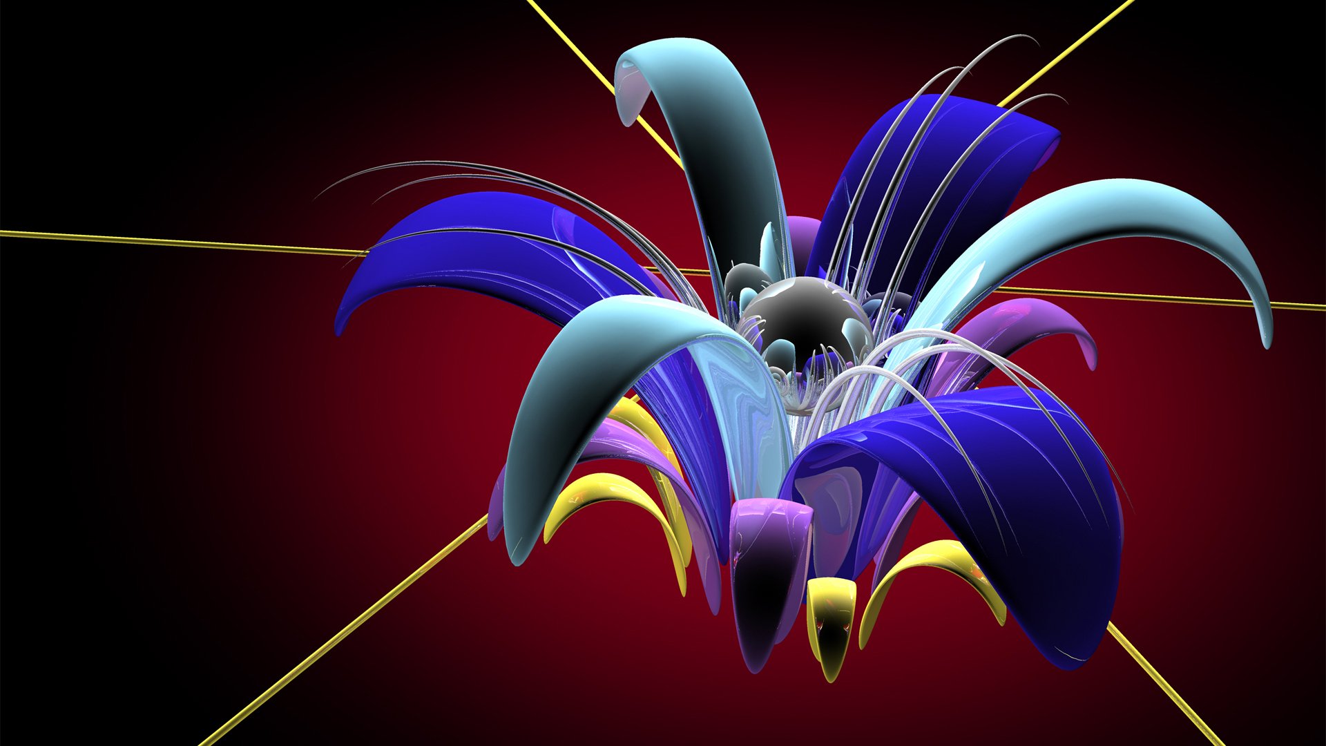 Minimalistische Kunst mit weißen Blumen auf blauem Hintergrund