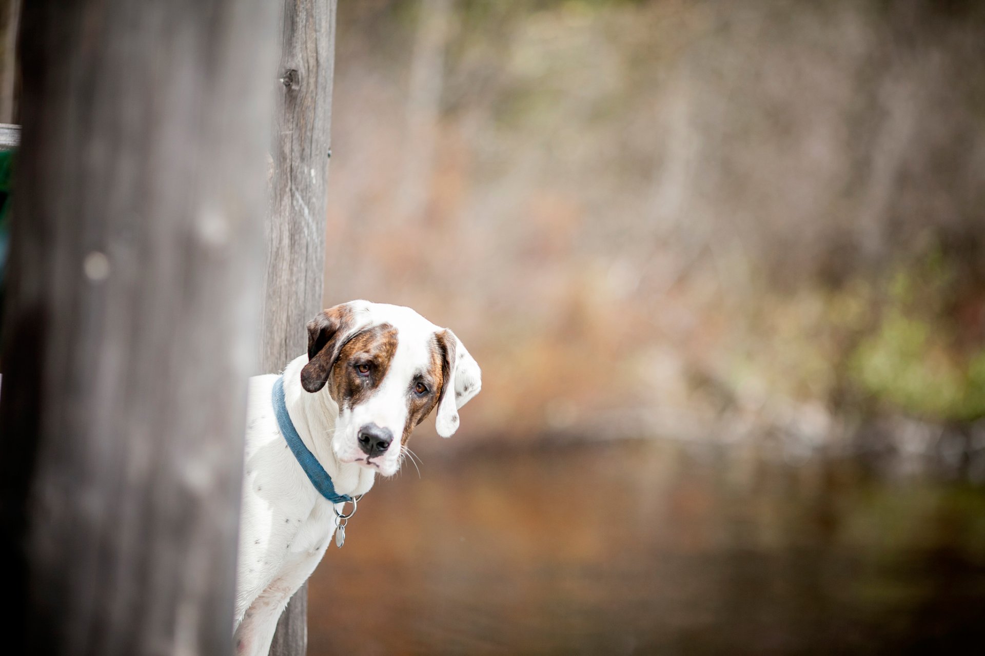 Der Fahrer sitzt mit dem Kopf eines Hundes am Steuer eines Autos