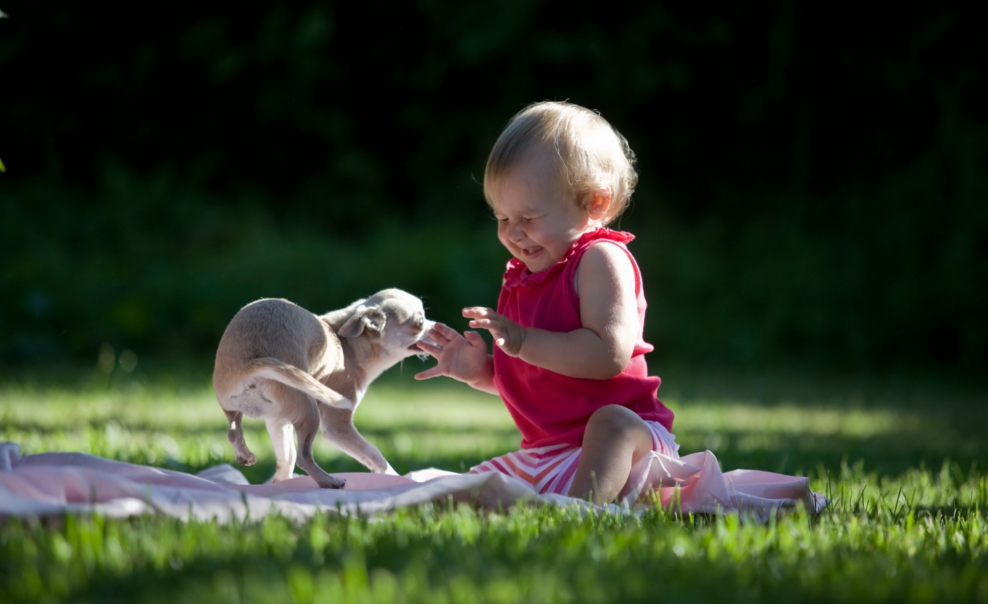 Lustiges Bild von Baby und Carlson mit Hund