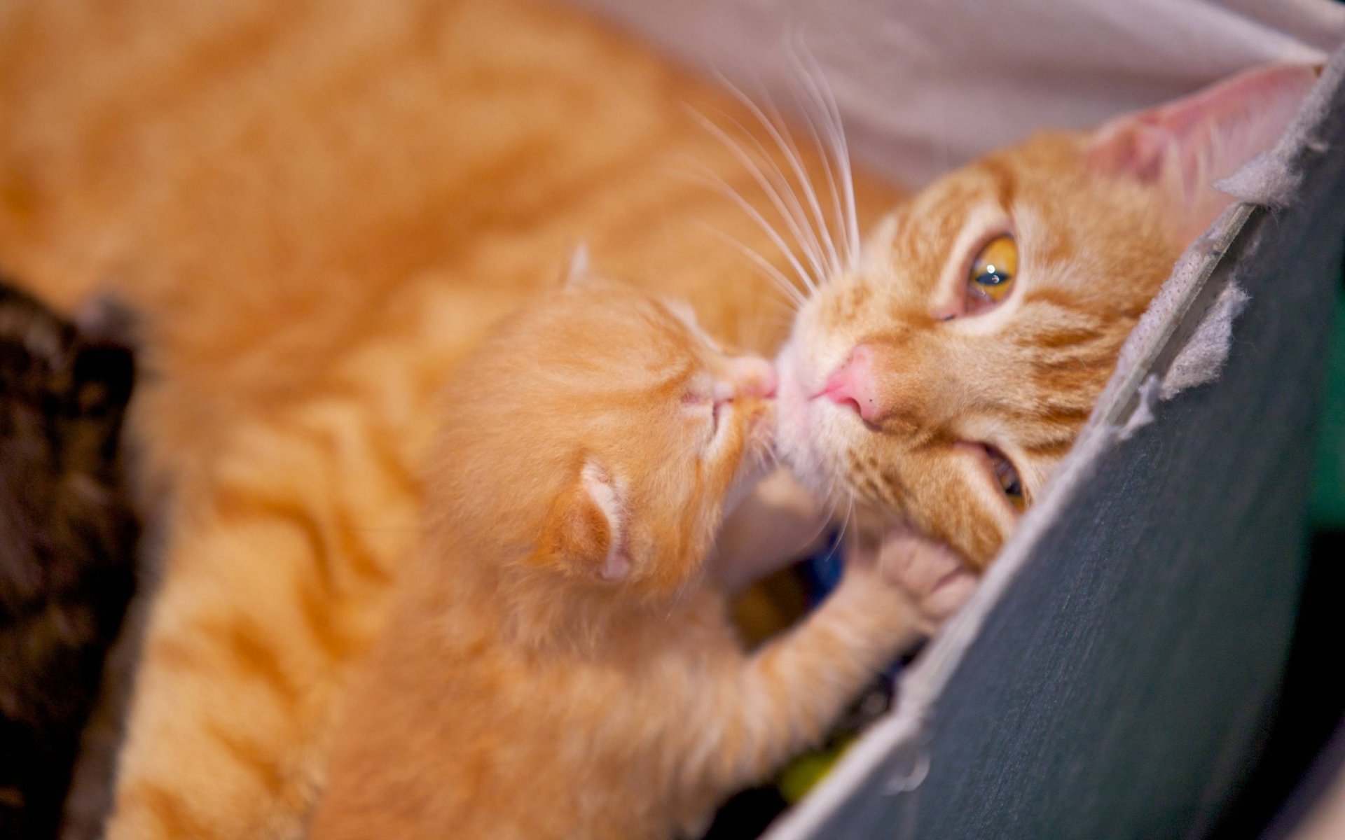 Auf dem foto sind zwei katzen. einer berührt mit der pfote das eisAuf dem Foto sind zwei Katzen. Einer berührt mit der Pfote das Eis