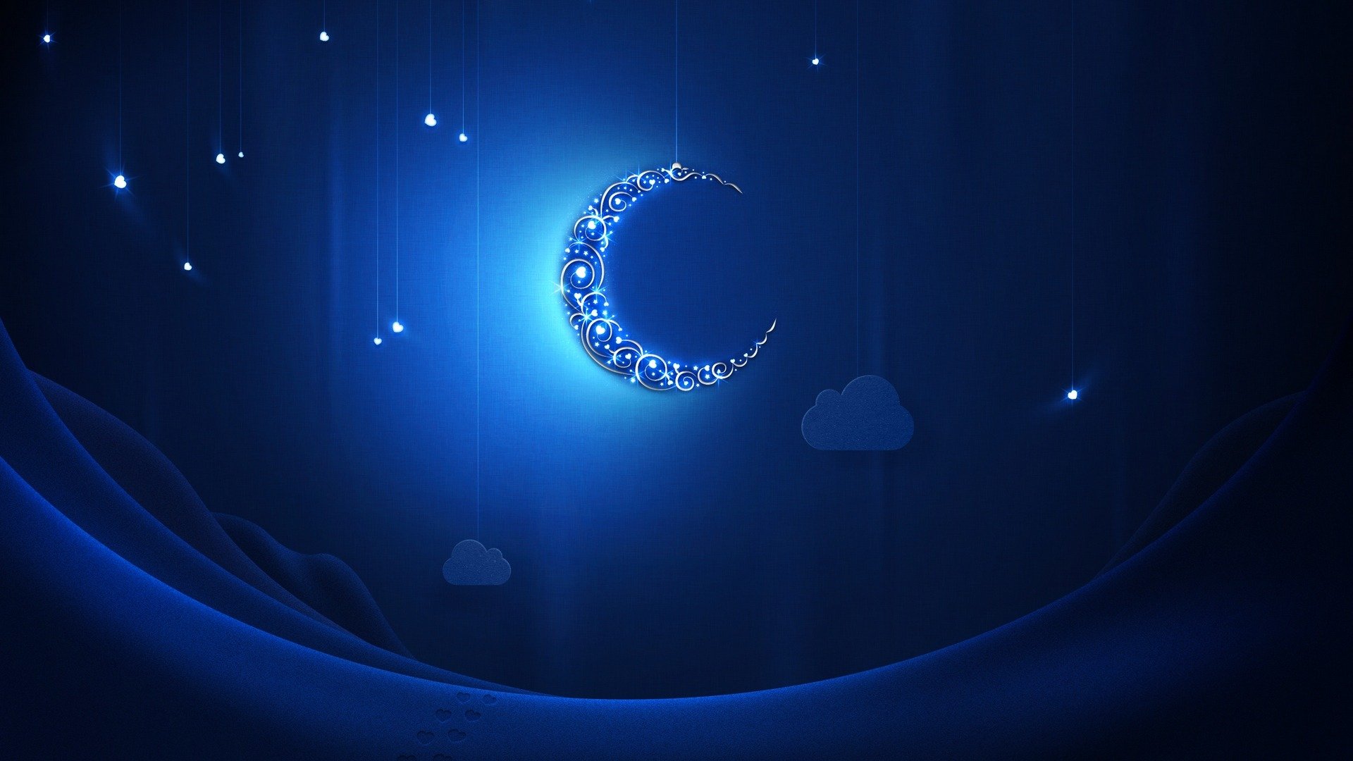 Durchbrochener heiliger monat und ankünfte auf blauem hintergrundDurchbrochener heiliger Monat und Ankünfte auf blauem Hintergrund