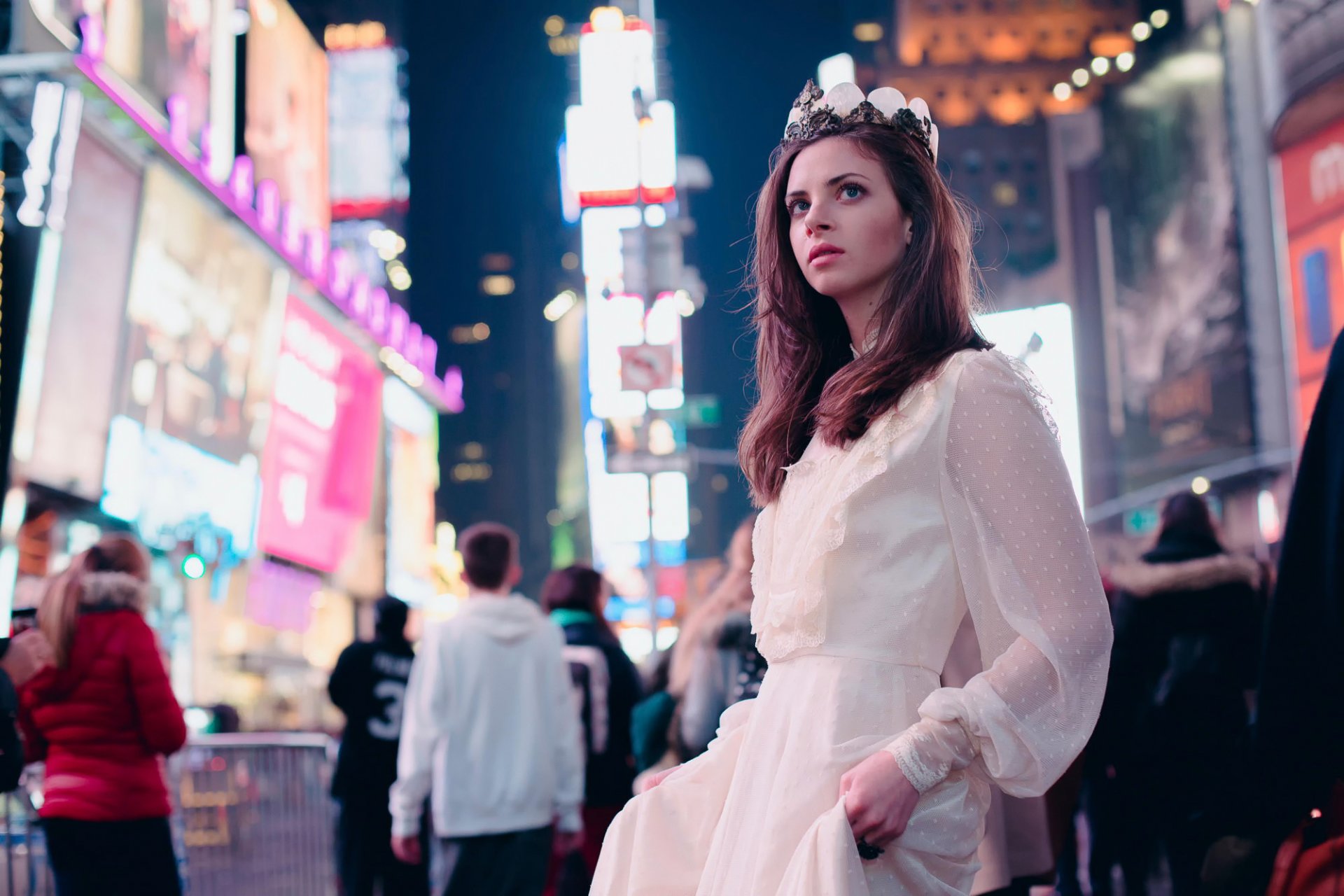 In der mitte des new yorker zentrums können sie ein modell im straßenstil fotografierenIn der Mitte des New Yorker Zentrums können Sie ein Modell im Straßenstil fotografieren