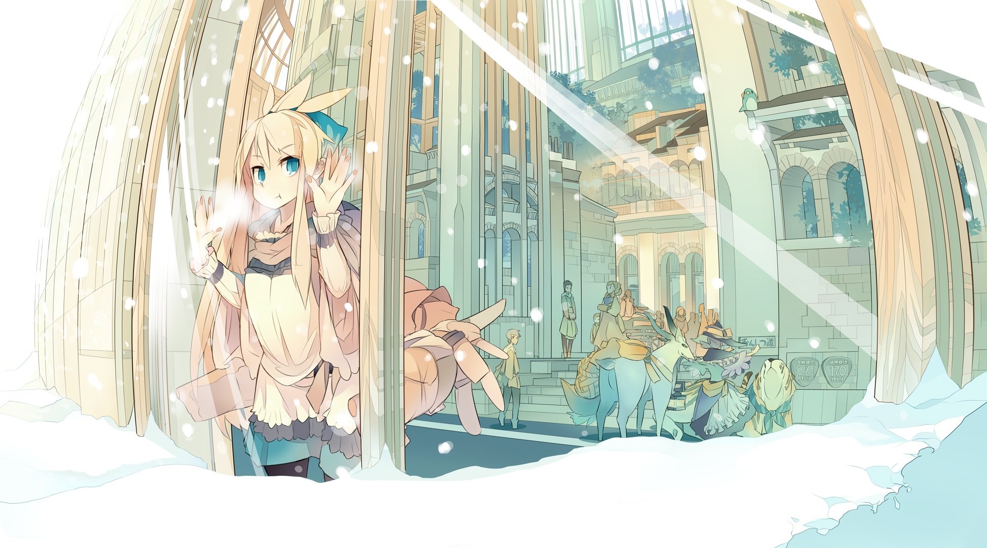 Anime-zeichnung. mädchen in rot, das am teich liegtAnime-Zeichnung. Mädchen in Rot, das am Teich liegt