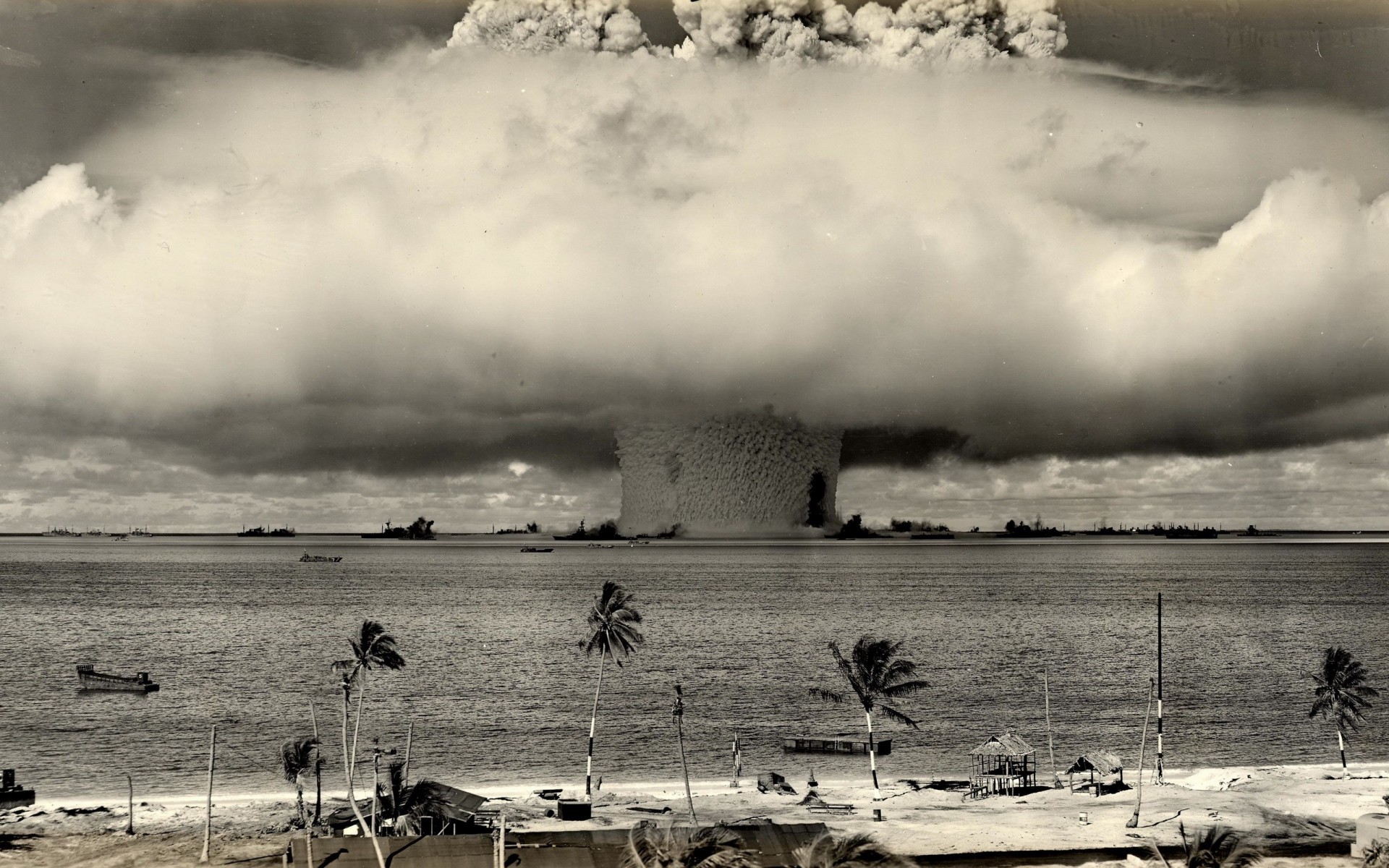 Rauch von einer Druckwelle in der Nähe des Strandes