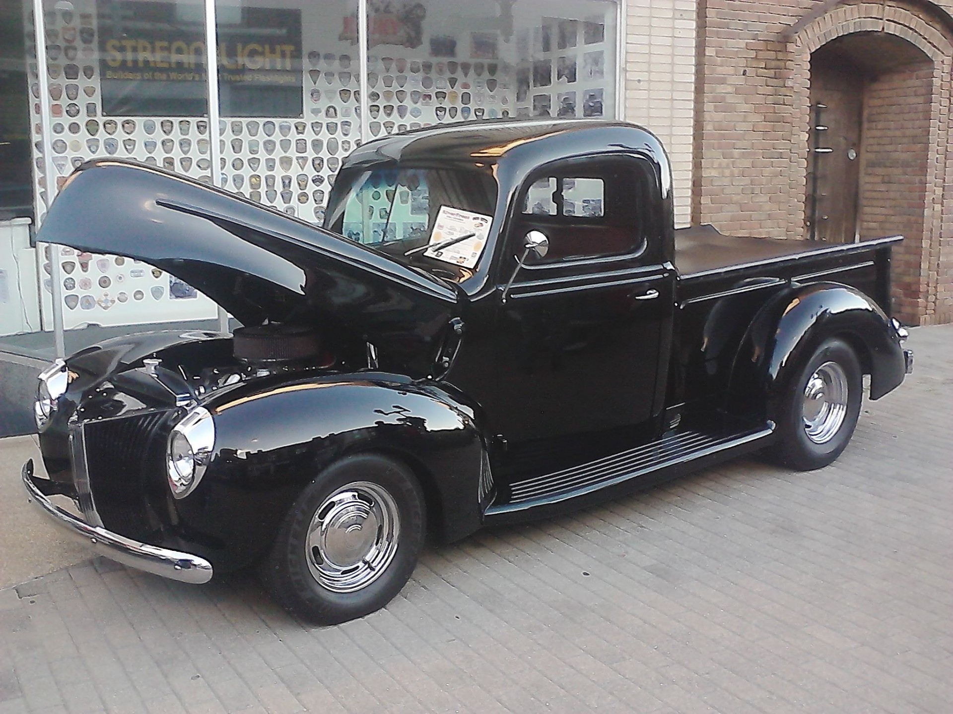 Blau-schwarzer Pickup-TRUCK mit offener Motorhaube