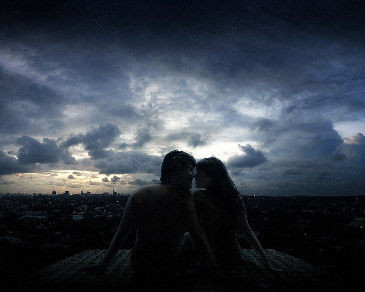 Zwei nachts auf dem Dach des Hauses