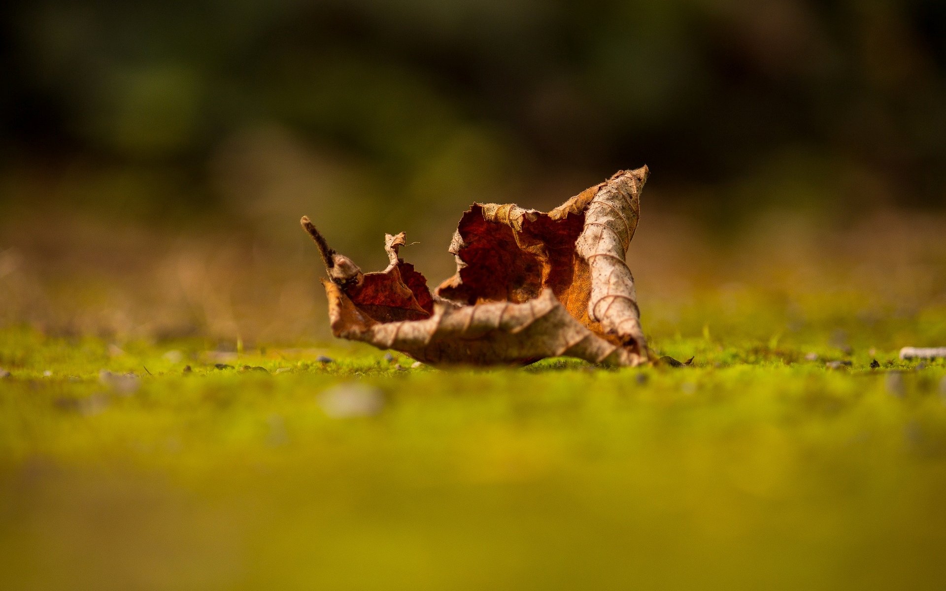 Ein gefrorenes trockenes Blatt mit einer Schneeflocke, die daran hängt