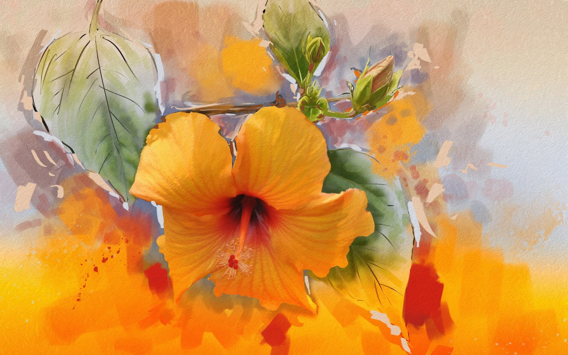 Orange Blume und grüne Blätter