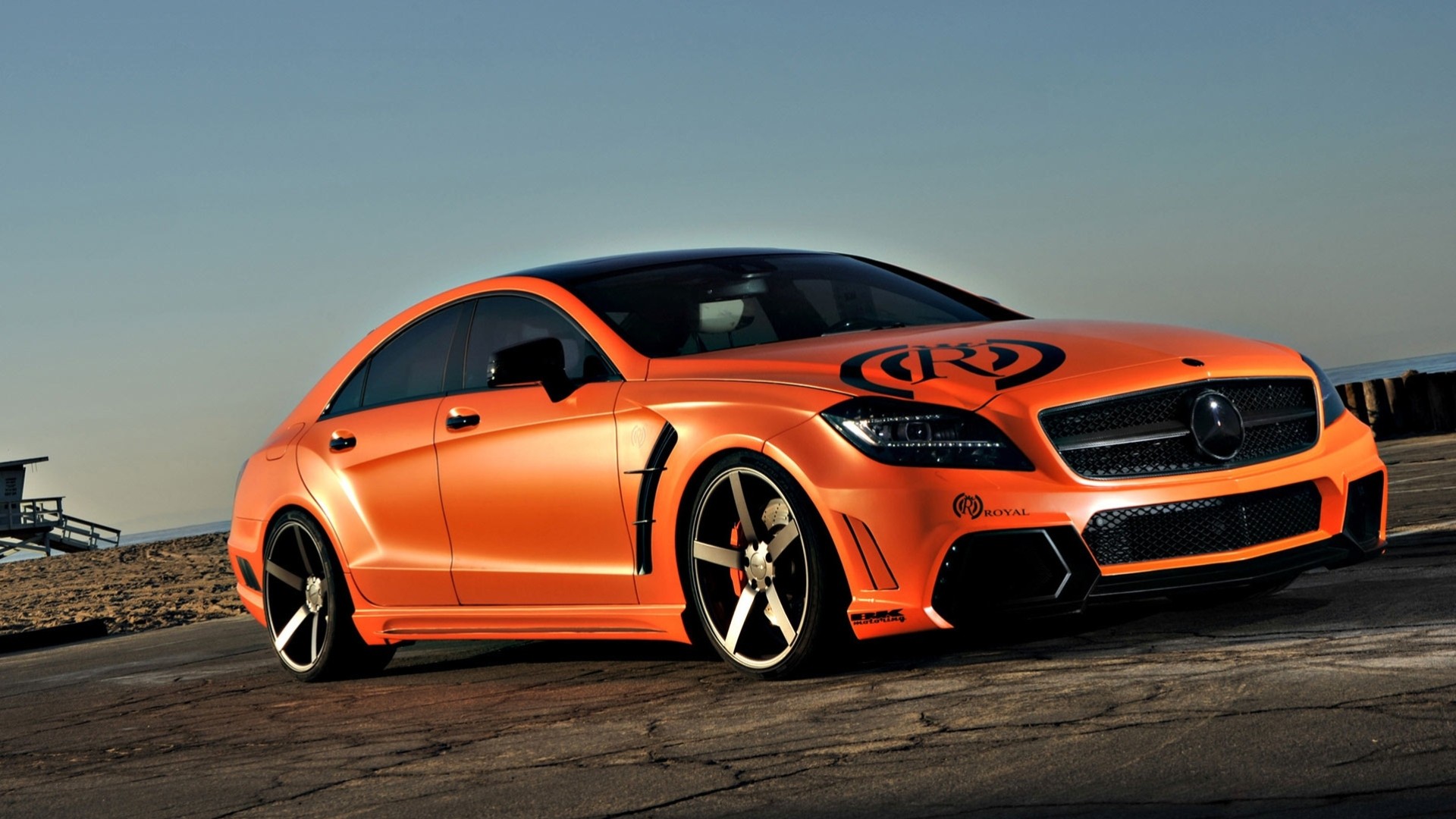 Stilvolle orange motorrad mit grauen einsätzen auf blau-weißem hintergrundStilvolle orange Motorrad mit grauen Einsätzen auf blau-weißem Hintergrund