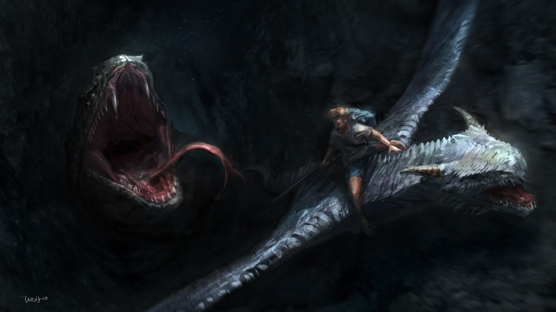 Fantastische rettung eines mannes vor einem monsterFantastische Rettung eines Mannes vor einem Monster