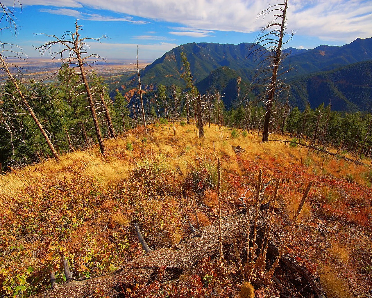 Schneebedeckte Berge und Wälder am Fuße Amerikas