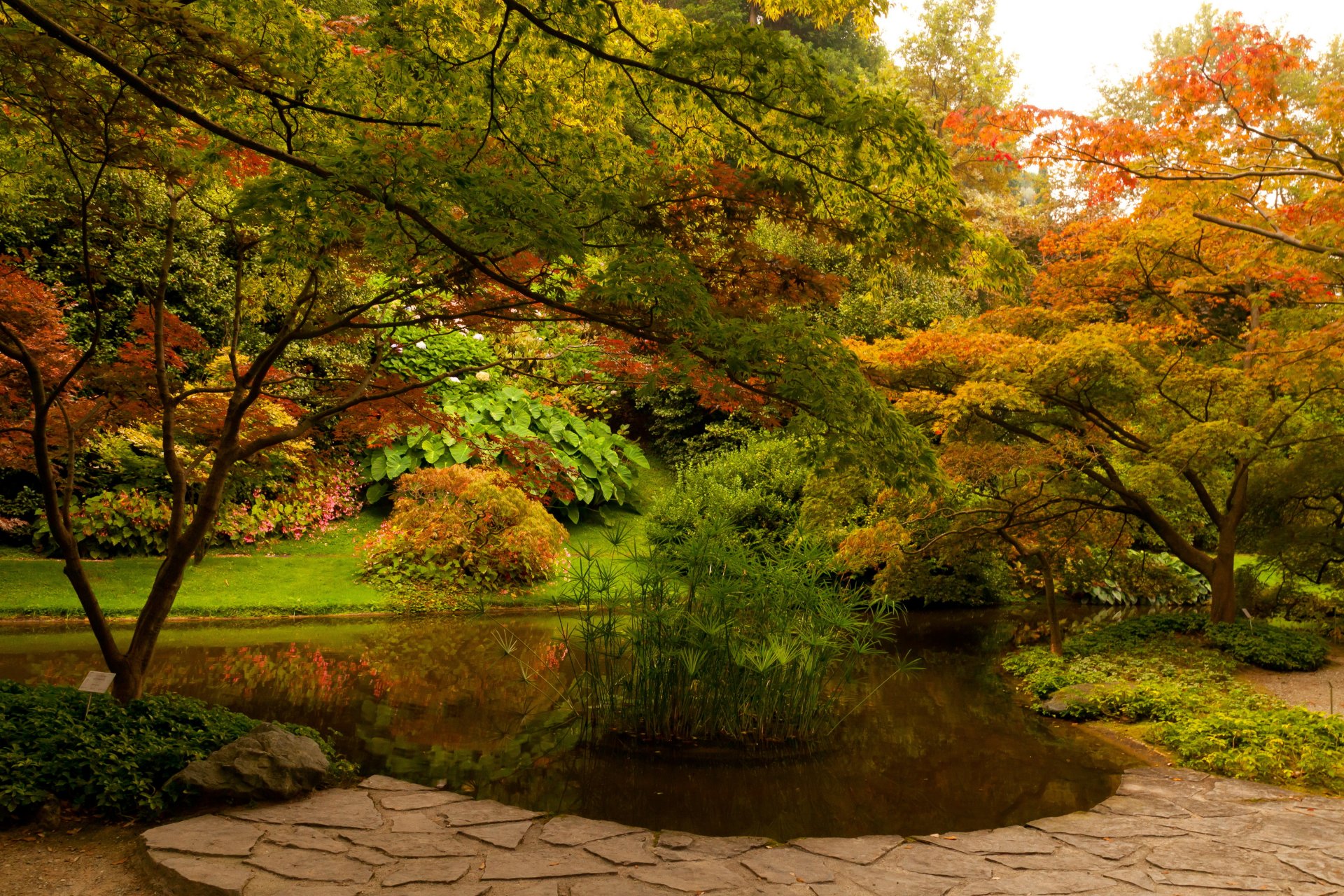 Kleine Kinder gehen im Park am Brunnen spazieren