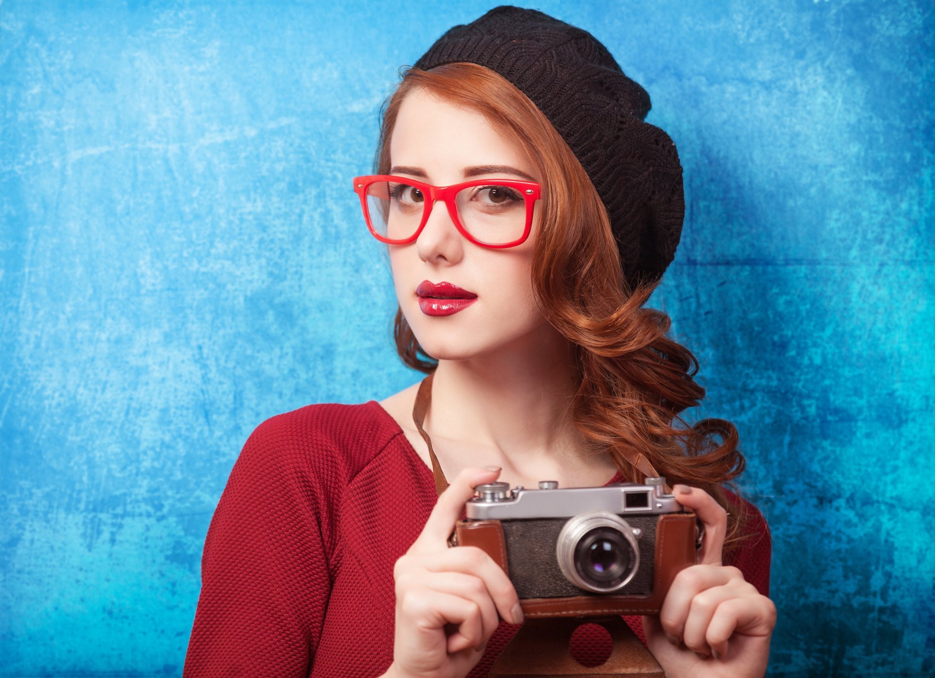 Eine Kamera und ein hölzerner Mann auf einem zerknitterten Stoff