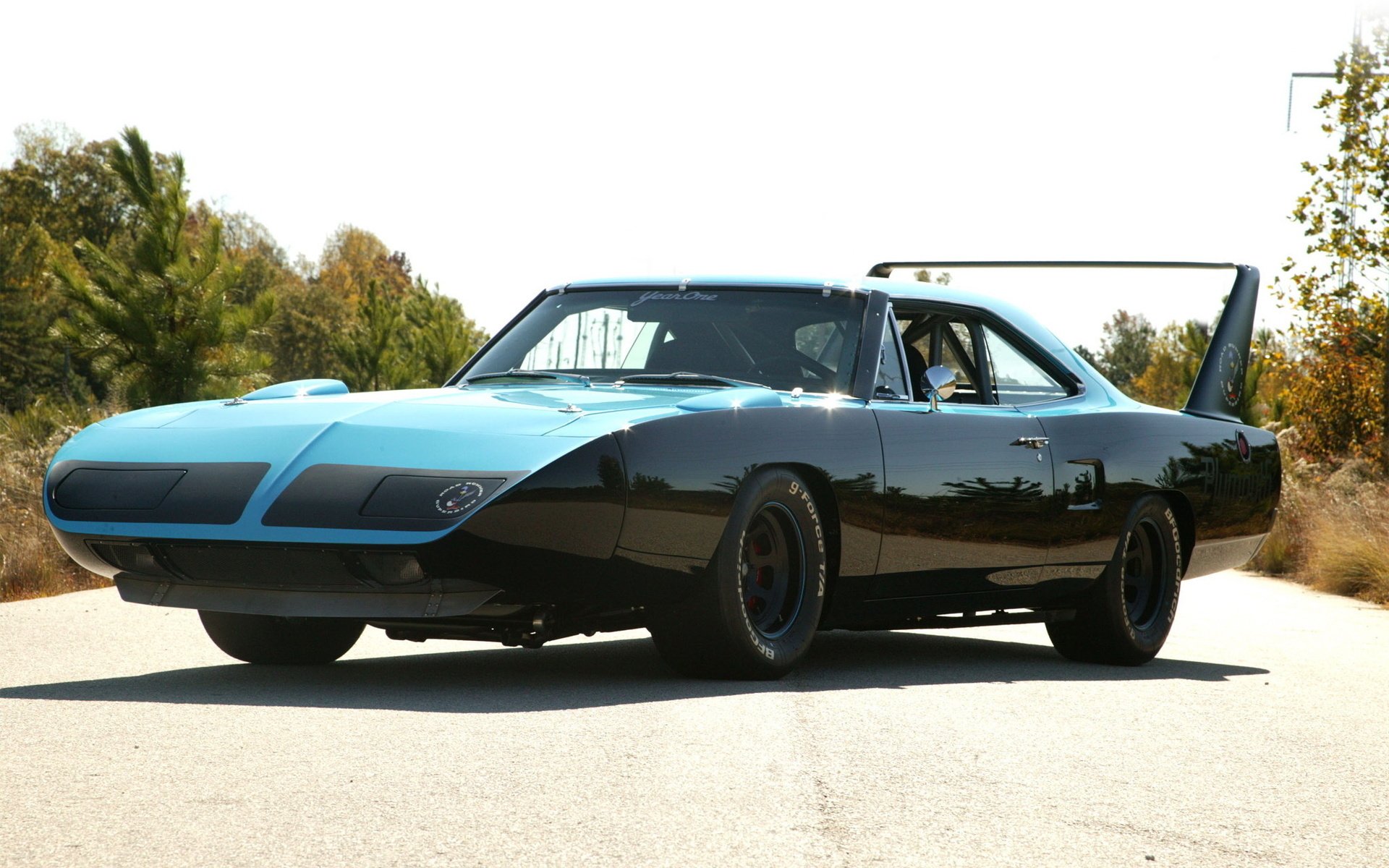 Der Hintern eines blauen Autos, das in den Sonnenuntergang fährt
