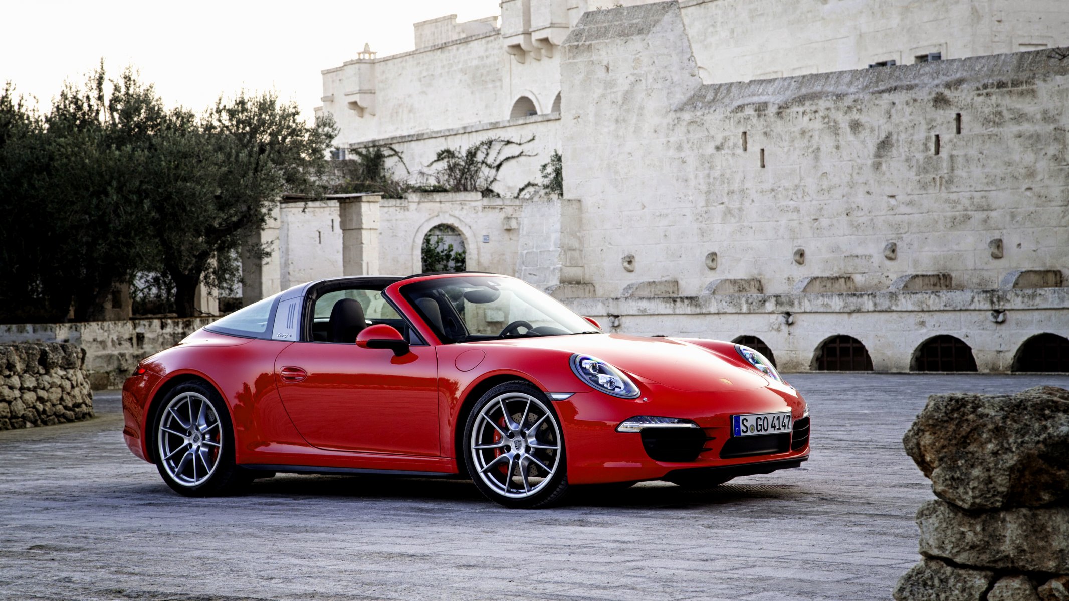 Ein leuchtend roter porsche auf einem schönen hintergrundEin leuchtend roter Porsche auf einem schönen Hintergrund