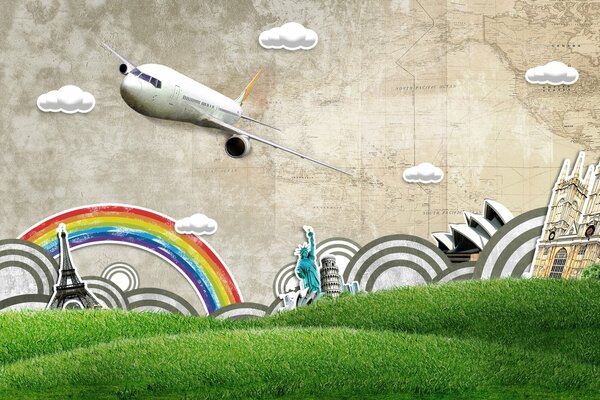 Zeichnung von niedlichen Häusern auf einem Regenbogen