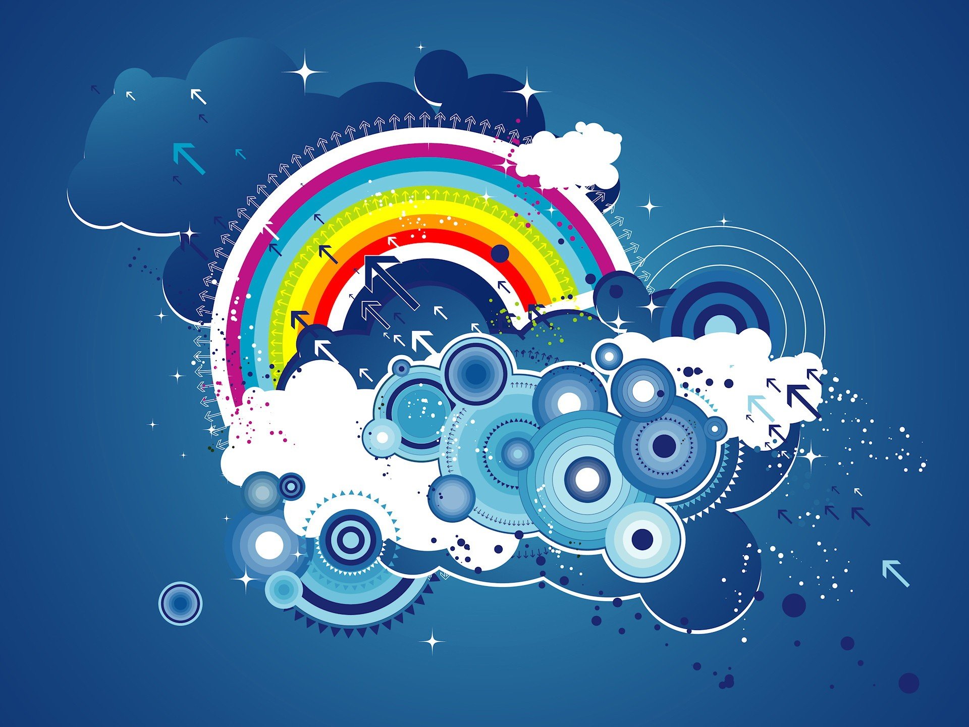Kleines regenbogen-pony auf einem bunten hintergrundKleines Regenbogen-Pony auf einem bunten Hintergrund