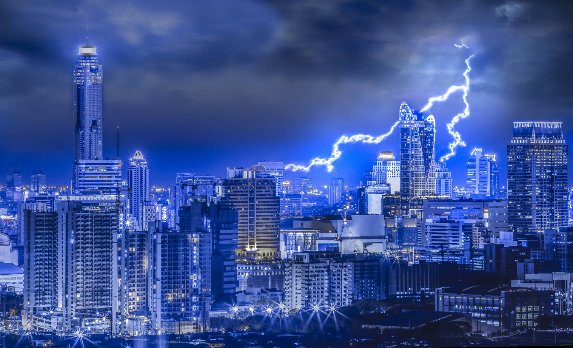 Roter Mitsubishi auf Nacht Stadt Hintergrund