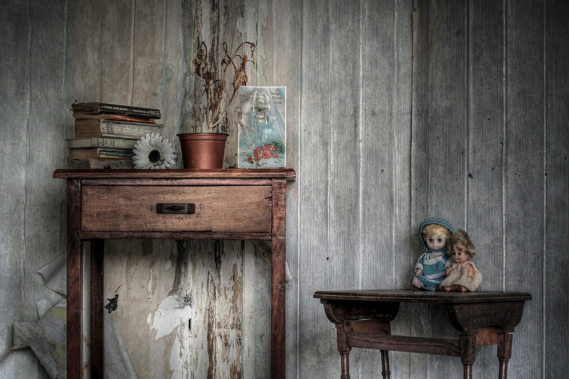 Möbel und spielzeug auf dem hintergrund der alten wandMöbel und Spielzeug auf dem Hintergrund der alten Wand