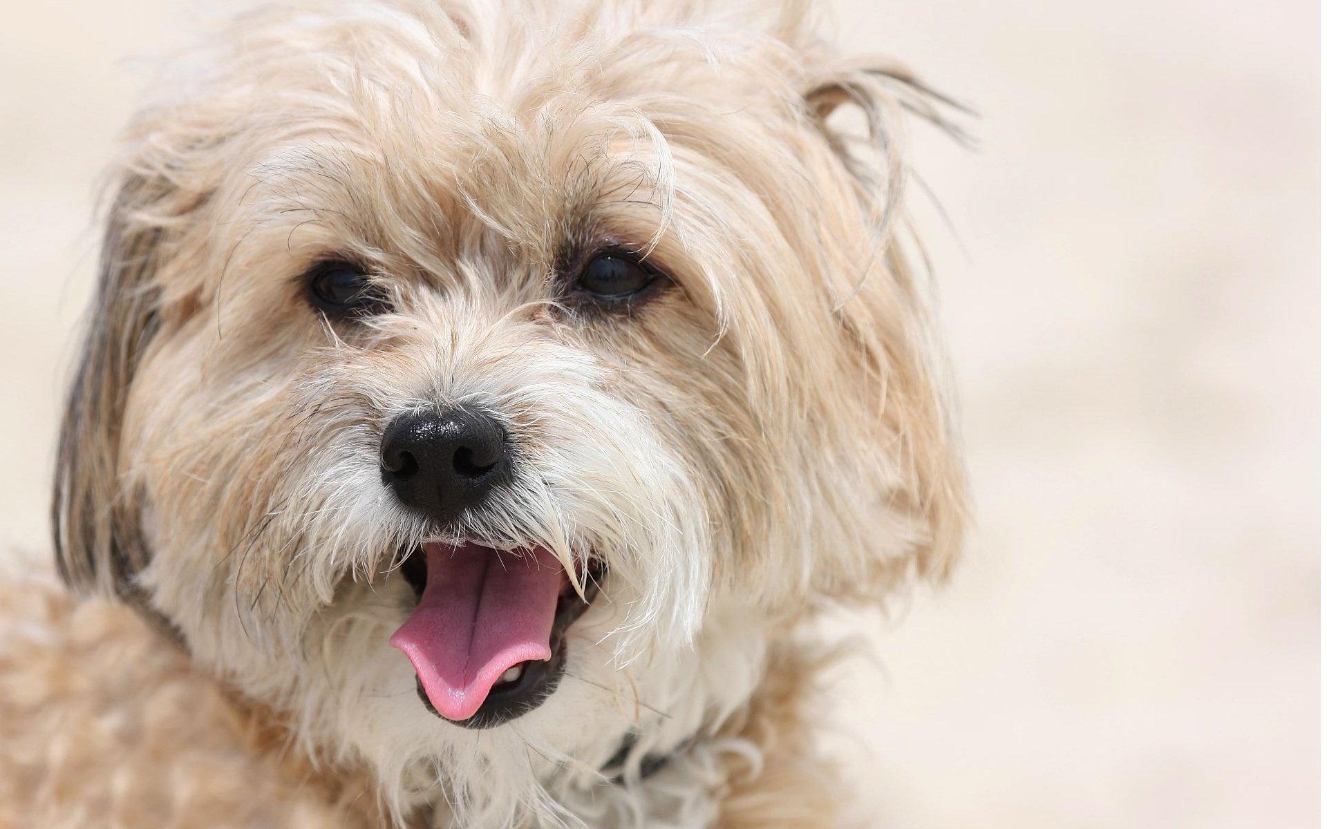 Ein Husky mit ausgestreckter Zunge. Hund auf dem Rasen