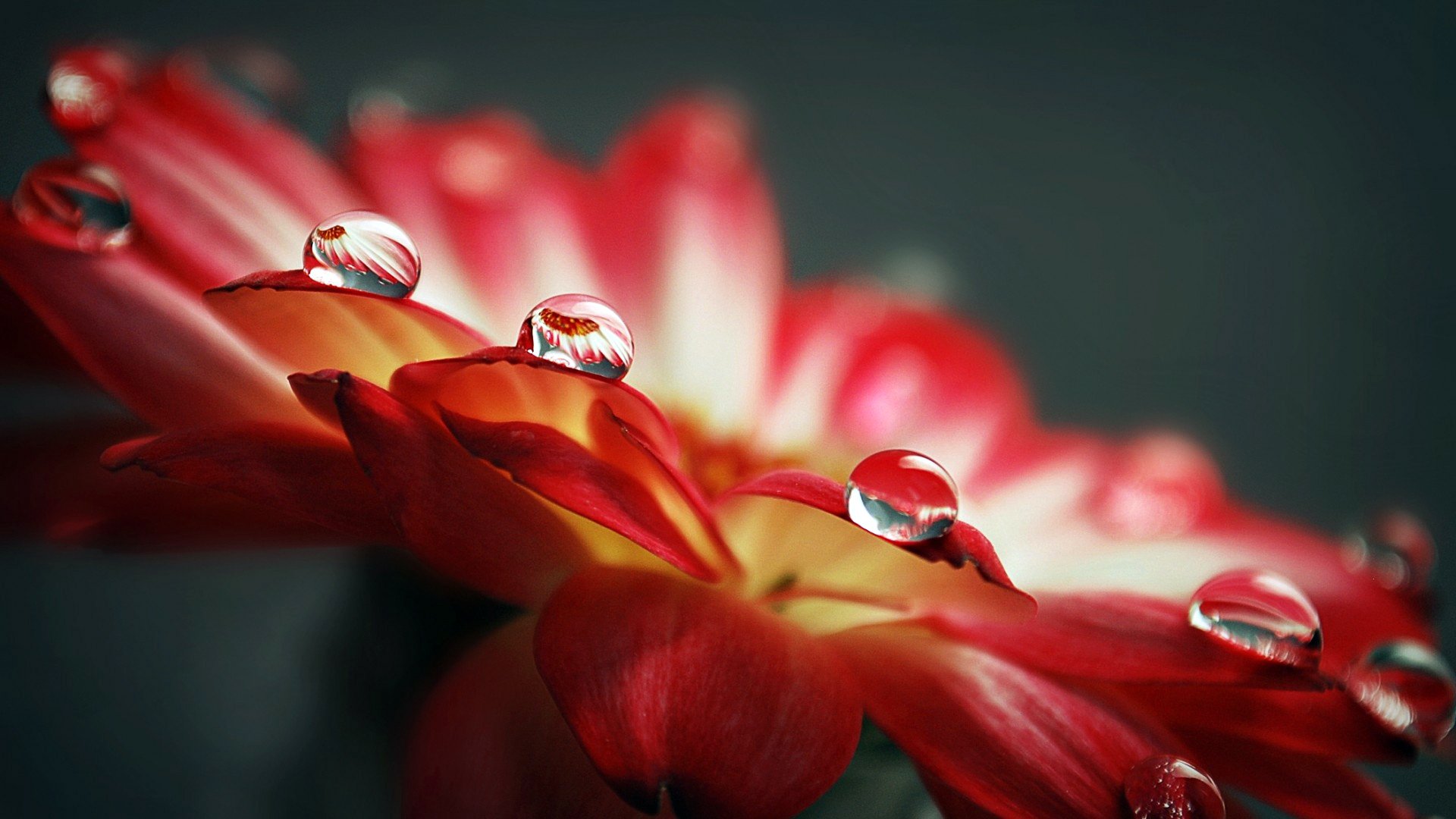 Leuchtend rote Blütenblätter einer Blume mit einem Tautropfen