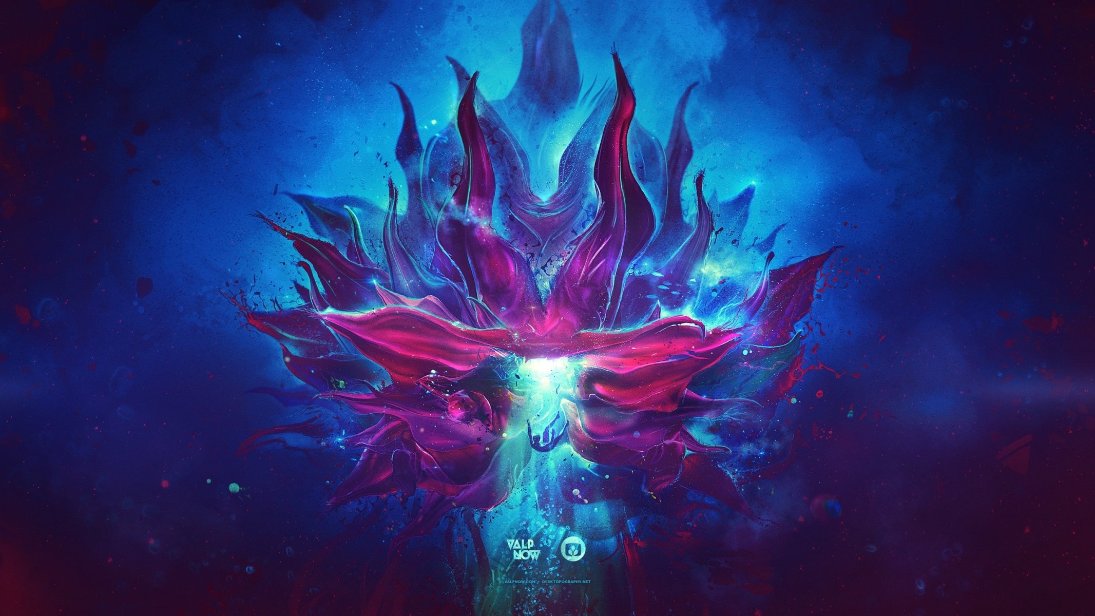 Rote Blütenblätter auf blauem Hintergrund Abstraktion