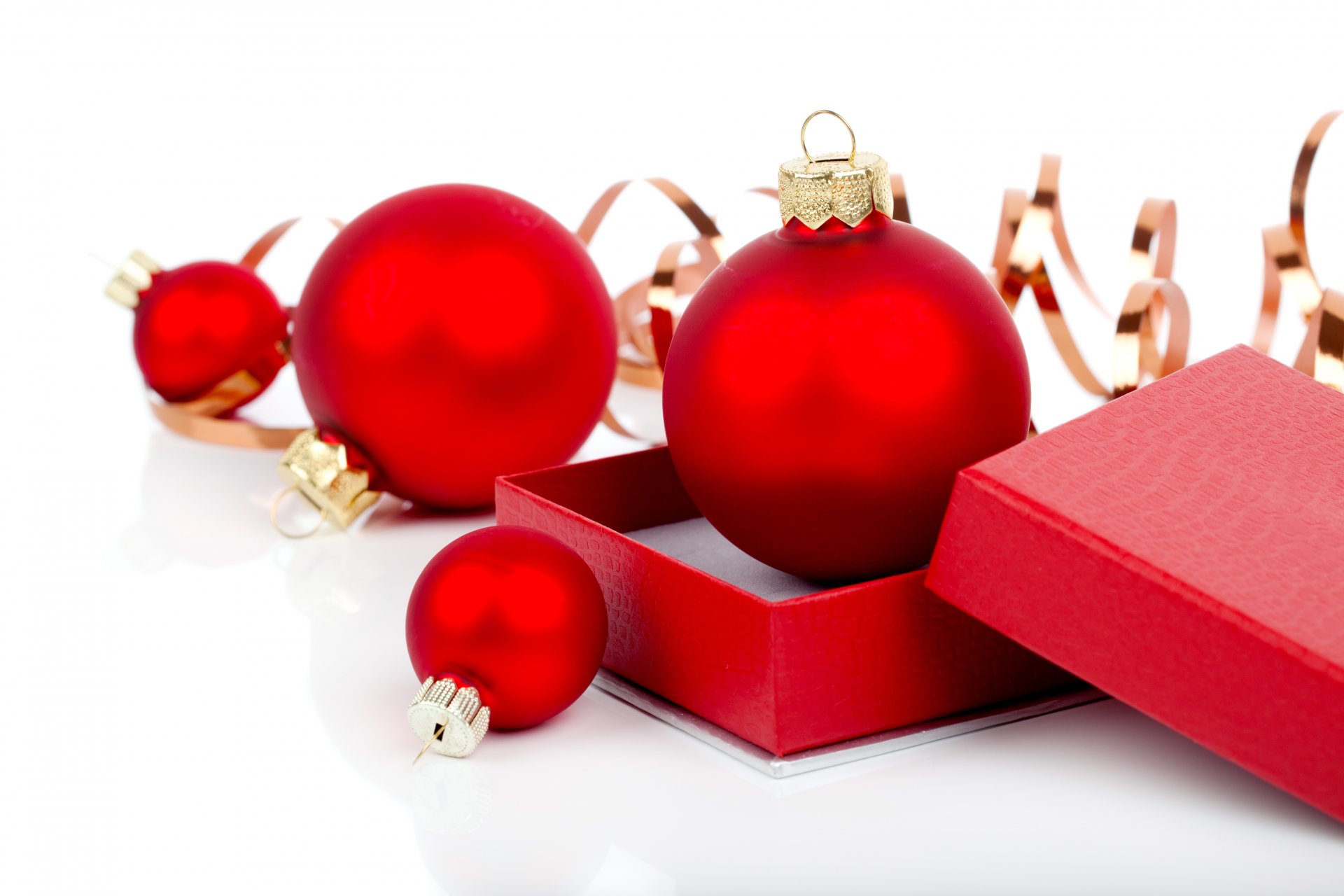 Rote matte Weihnachtskugeln in einer Box
