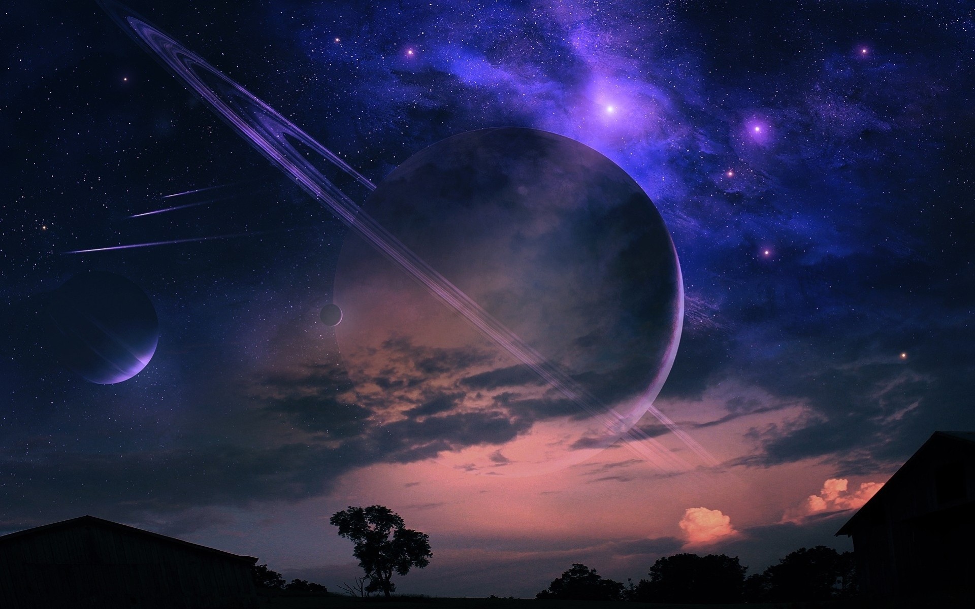 Planet auf dem hintergrund der galaxie, dunkelheitPlanet auf dem Hintergrund der Galaxie, Dunkelheit