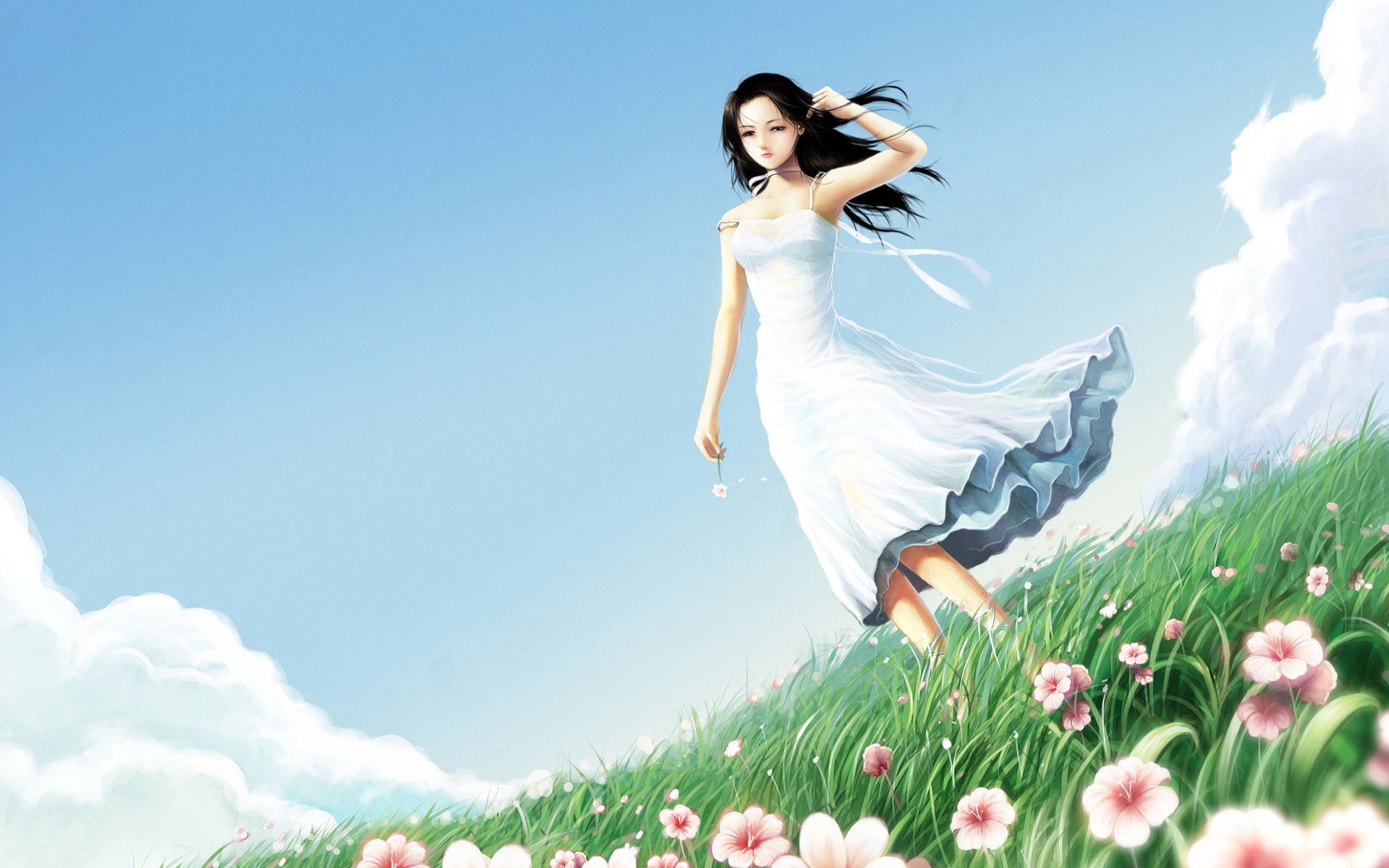 Abbildung eines Mädchens in einem Feld mit Blumen
