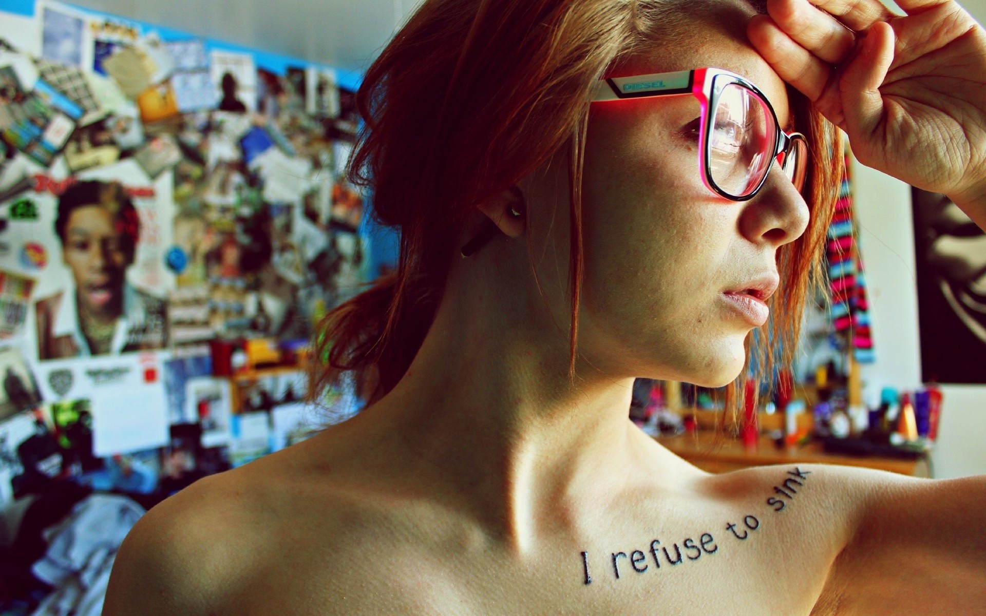 Rothaarige mädchen mit einem tattoo am schlüsselbeinRothaarige Mädchen mit einem Tattoo am Schlüsselbein