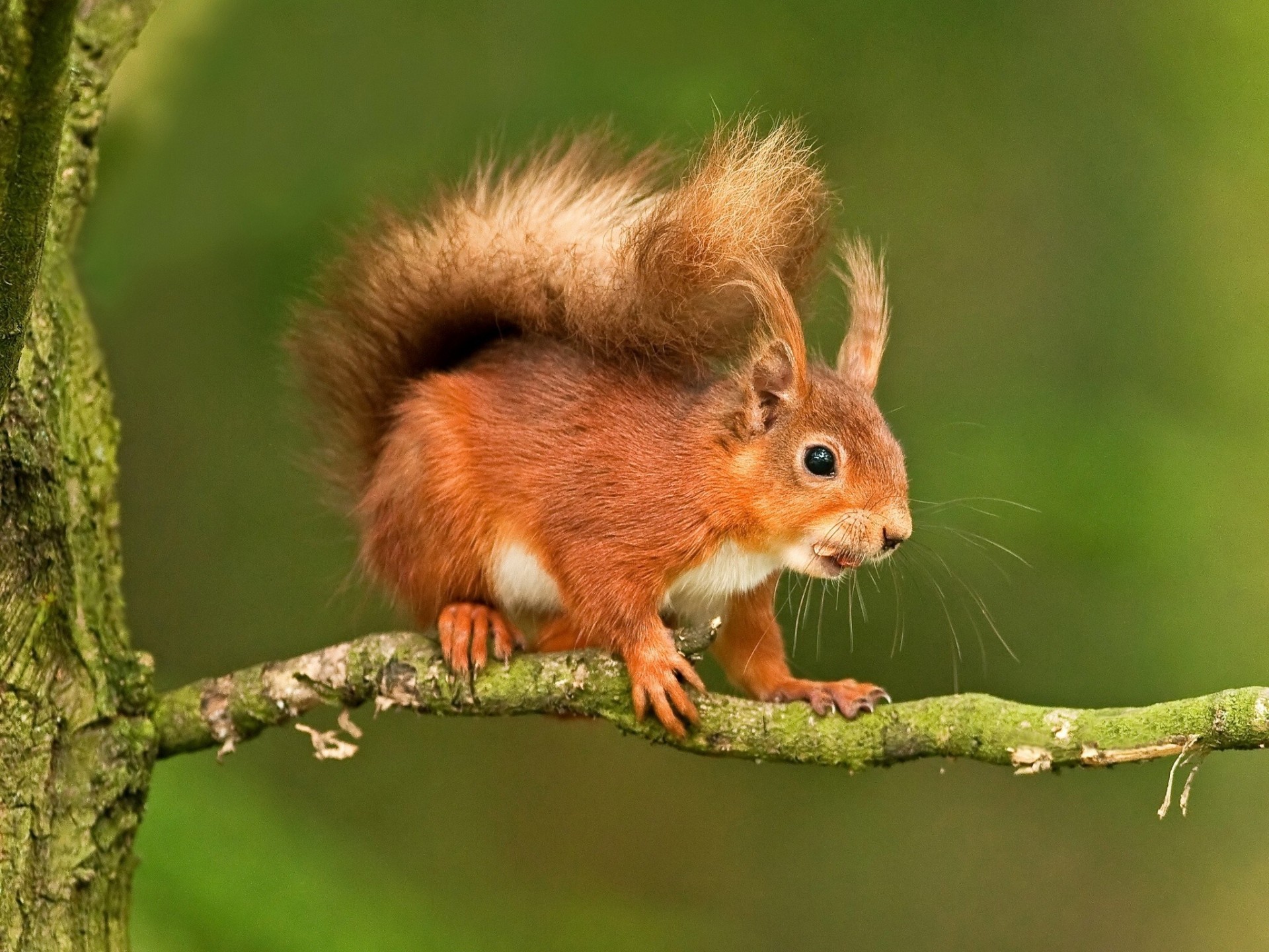 Rothaarige Eichhörnchen sitzt auf einem Ast