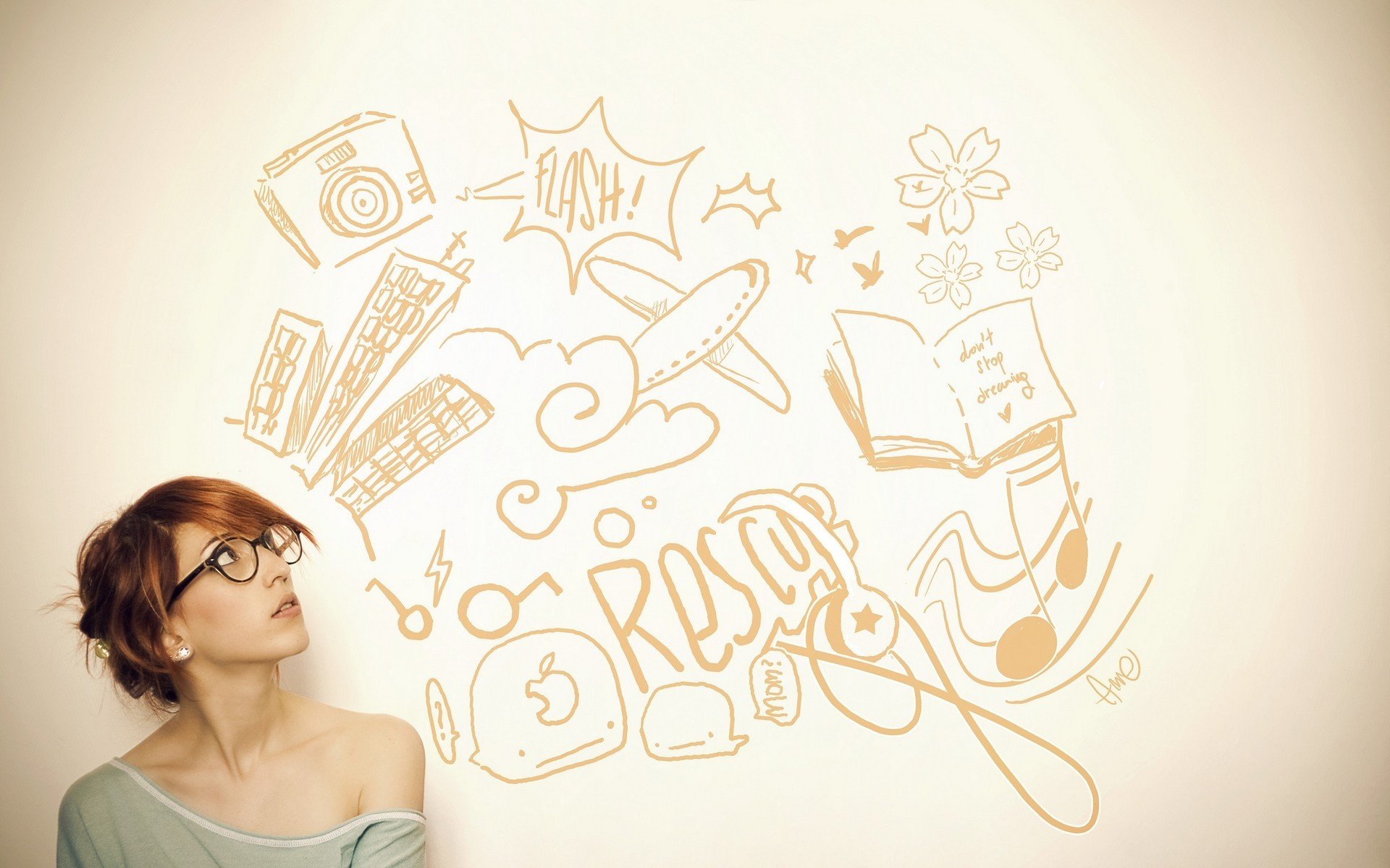 Rothaarige Mädchen im gelben Kleid mit Tulpen in der Hand