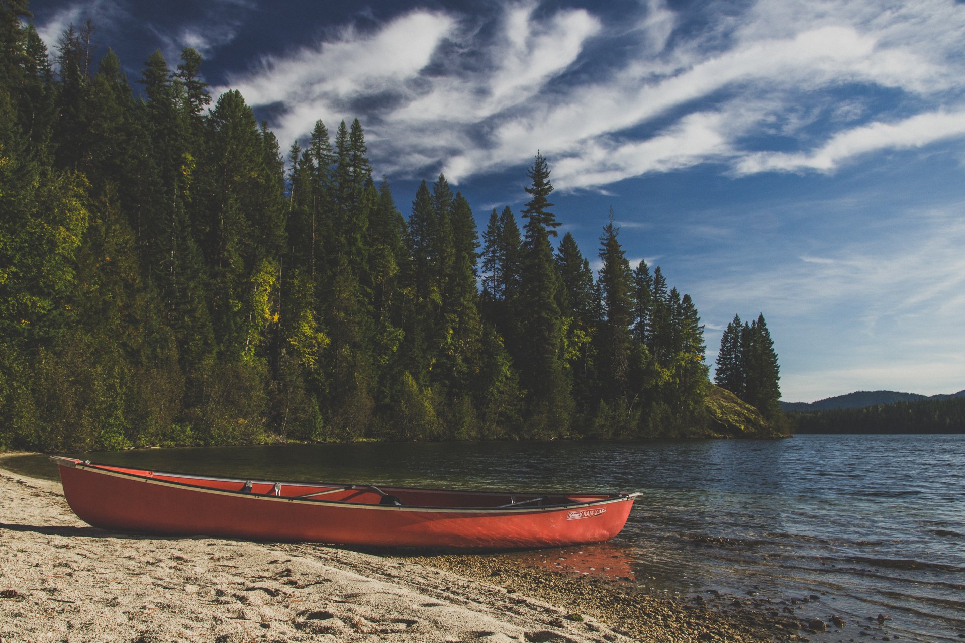 Umgekipptes Boot auf einer Sandbank auf einem Regenbogen-Hintergrund