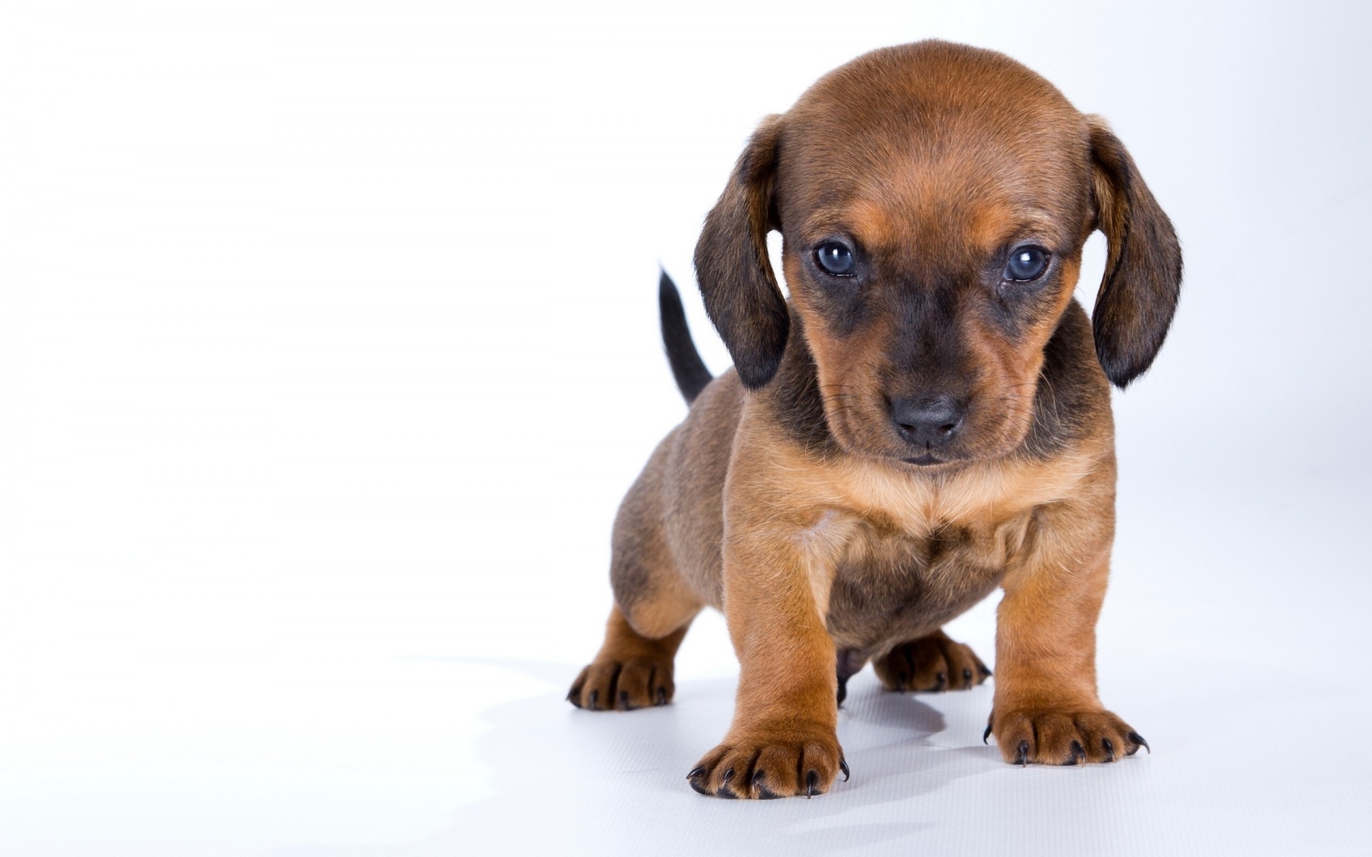 Niedlichen Dackel Welpen auf weißem Hintergrund