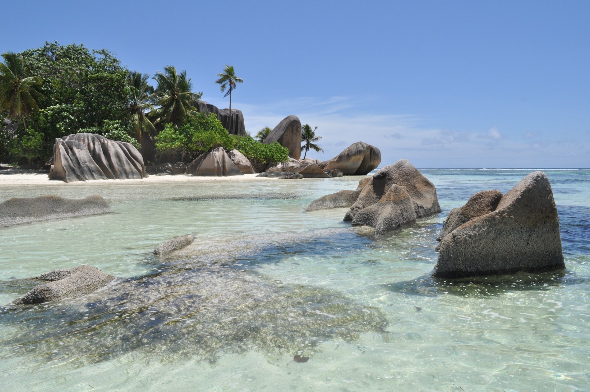 Schöne landschaft aus blauem wasser, gras und blauem himmelSchöne Landschaft aus blauem Wasser, Gras und blauem Himmel