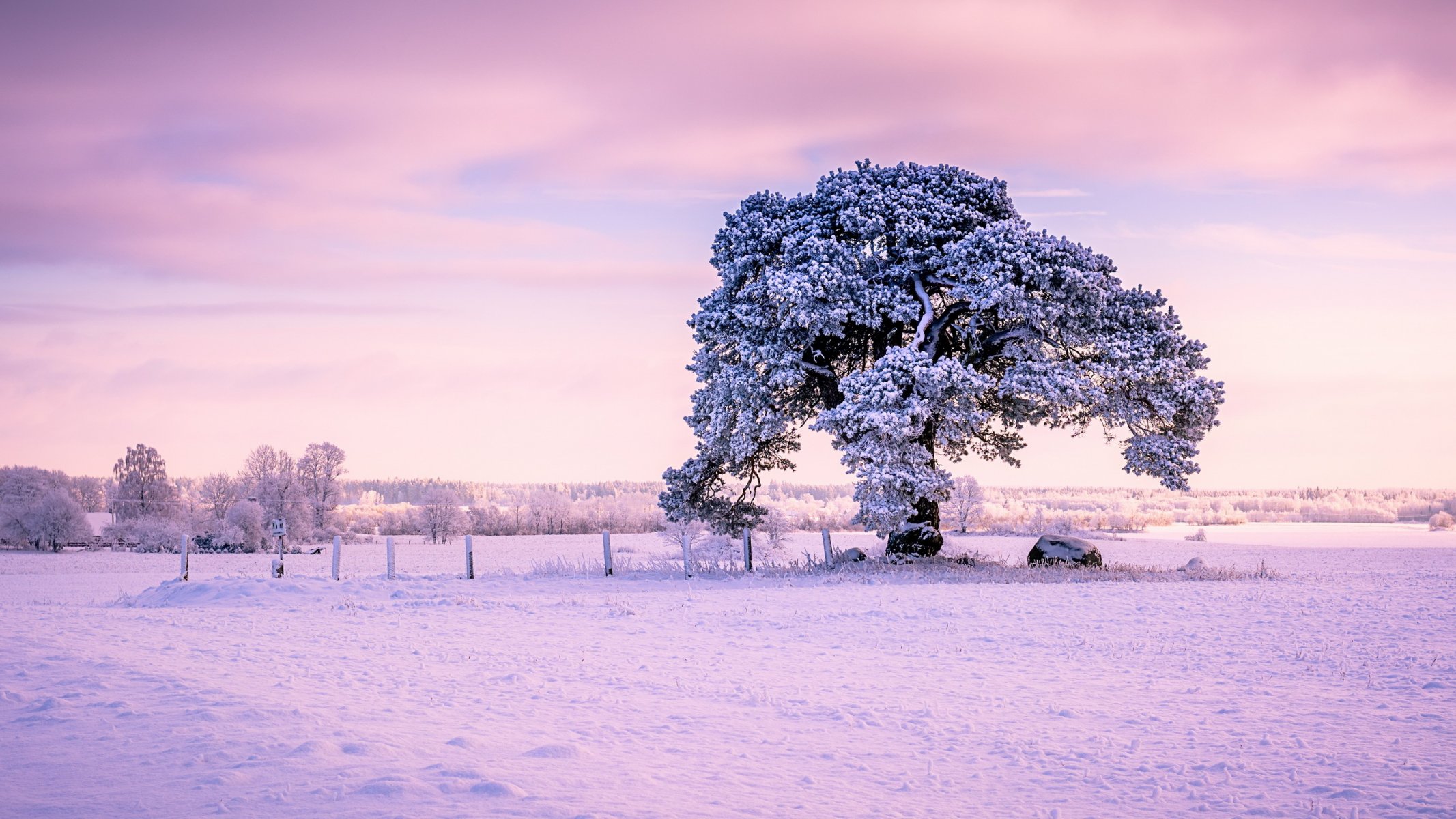 Schöne estnische Winterlandschaft bei Sonnenuntergang