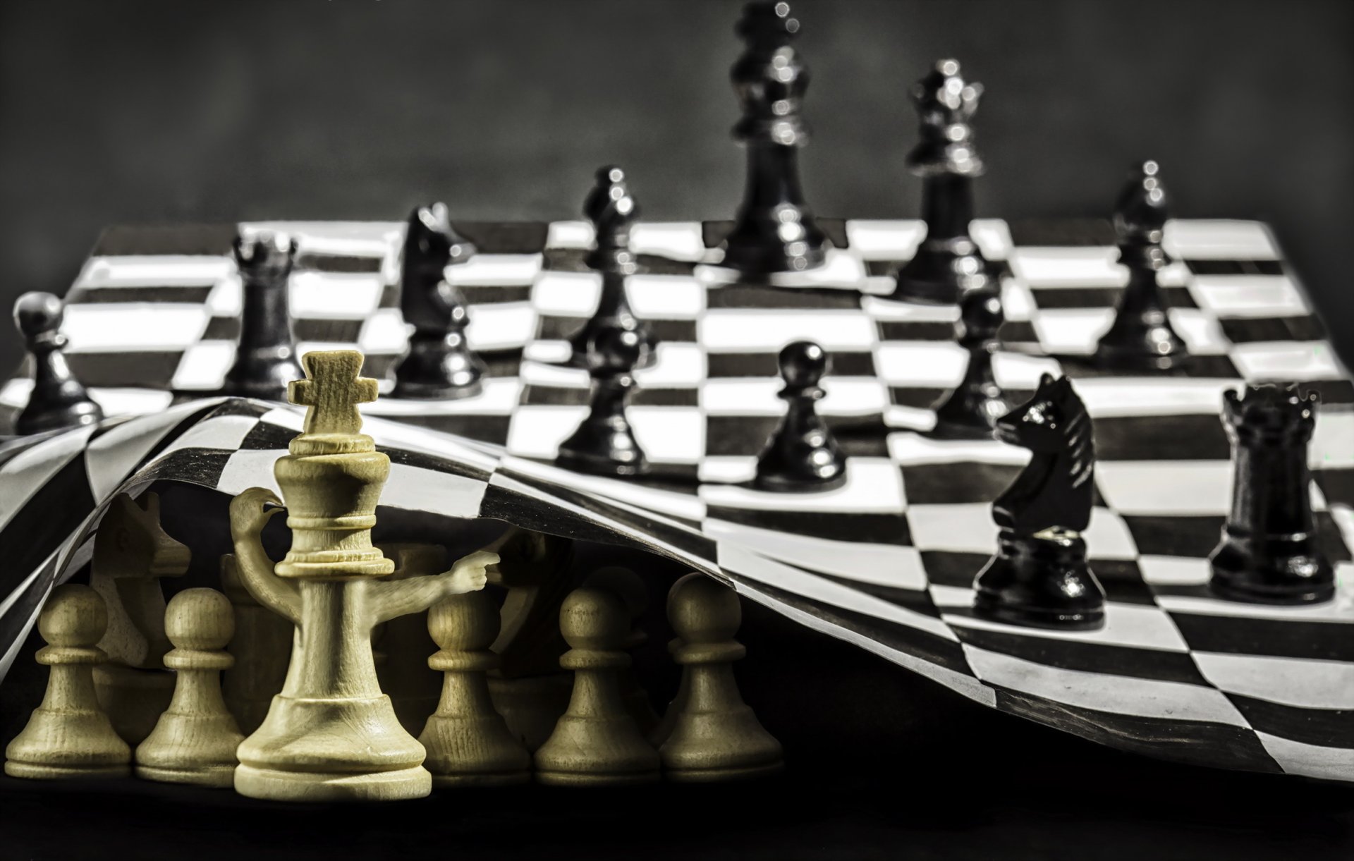 Zwei Schachfiguren schwarzer Bauer und weiße Königin