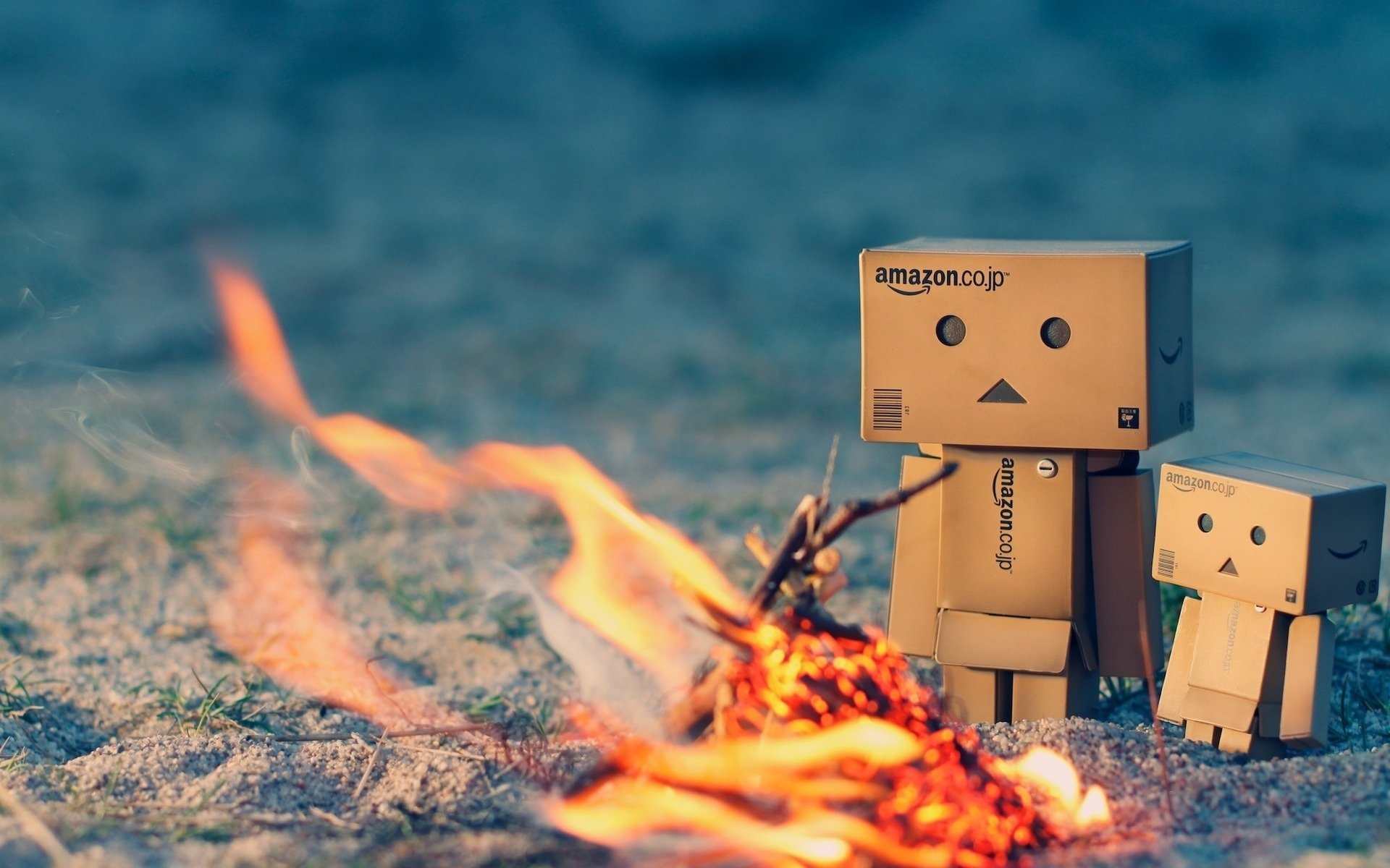 Männer aus einer schachtel verbrennen zweige am lagerfeuerMänner aus einer Schachtel verbrennen Zweige am Lagerfeuer