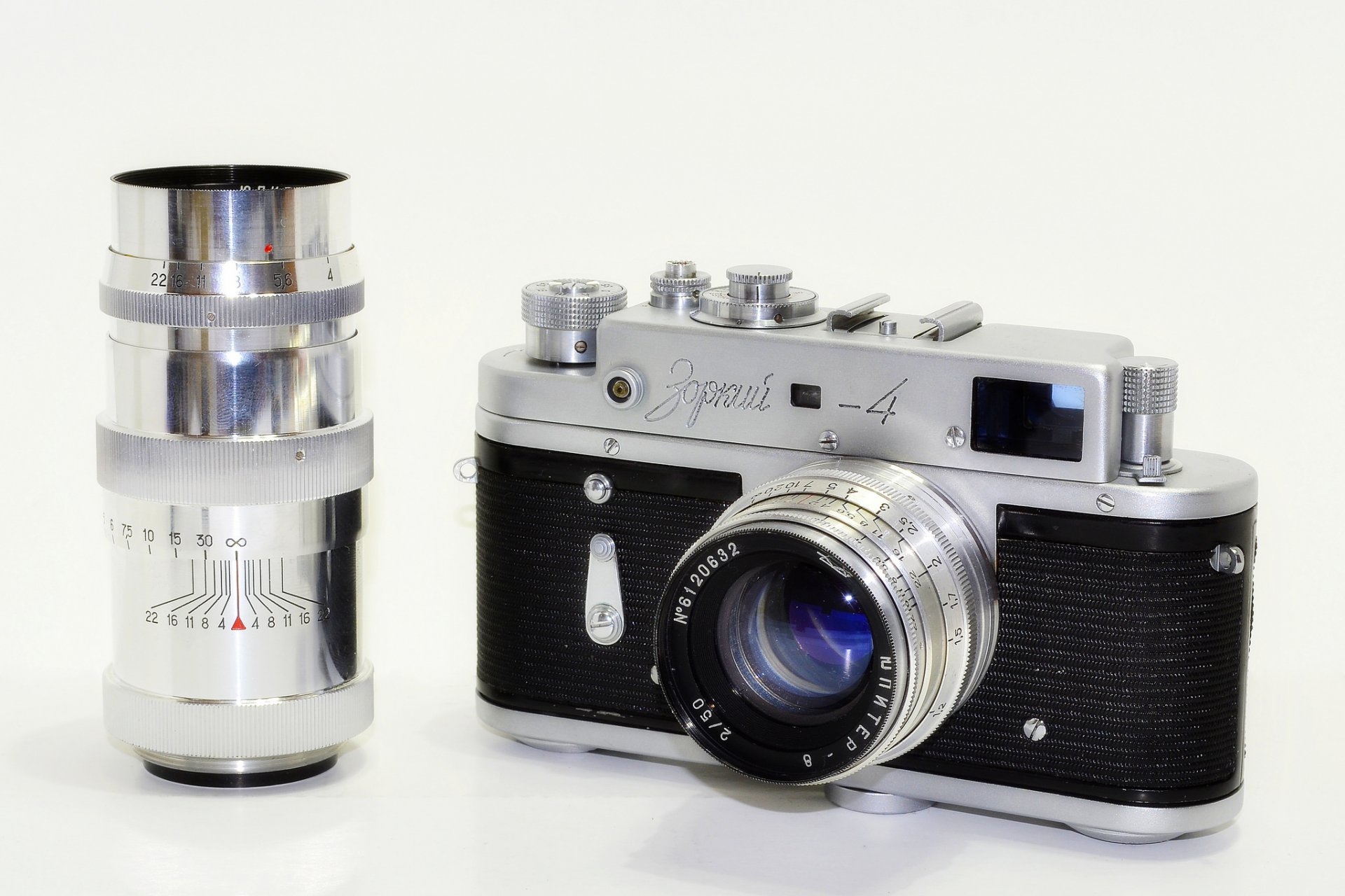 SCHARFSICHTIGE 4-KAMERA MIT ZUBEHÖR AUF DEM TISCH