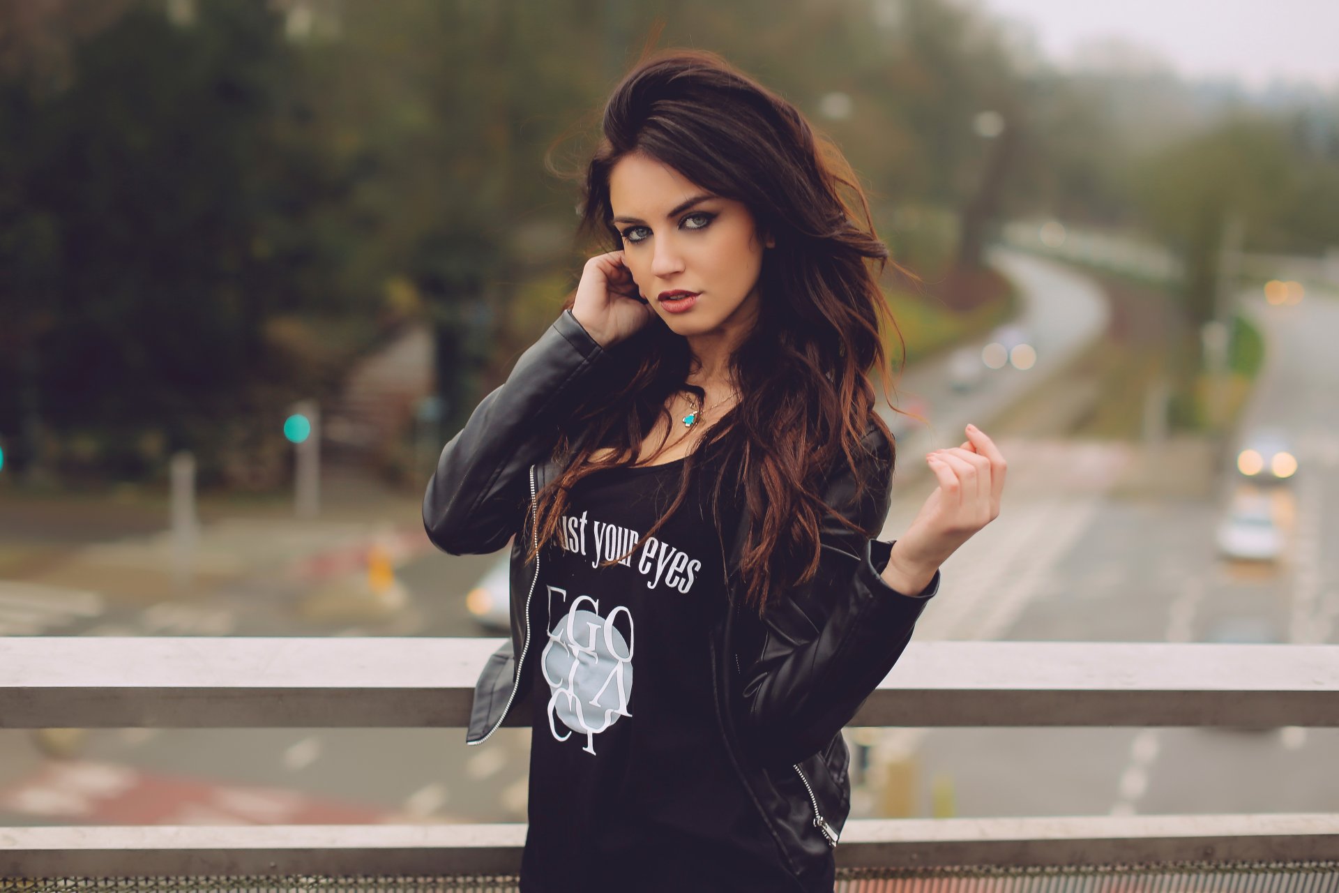 Mädchen mit blonden haaren und ohrringen schaut in die kameraMädchen mit blonden Haaren und Ohrringen schaut in die Kamera