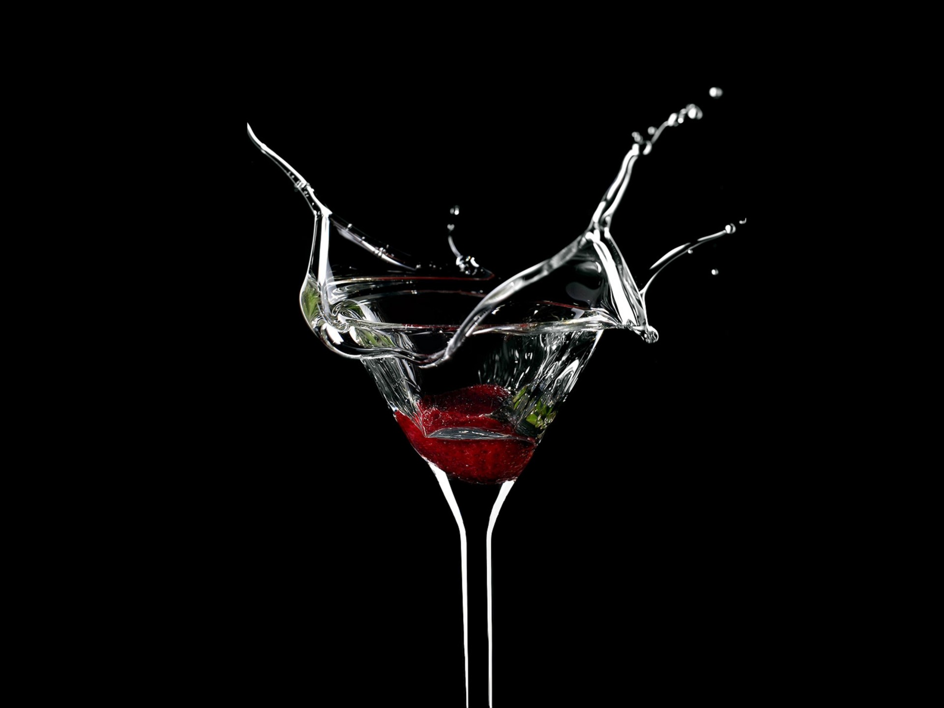 Reife Erdbeeren, die ins Wasser fallen