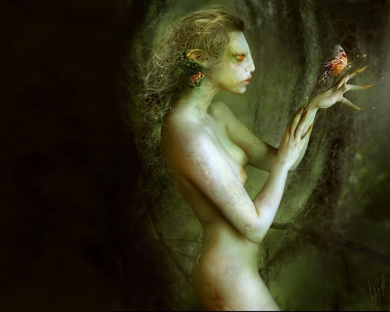 Kampf einer weiblichen Kriegerin mit einem aggressiven Monster