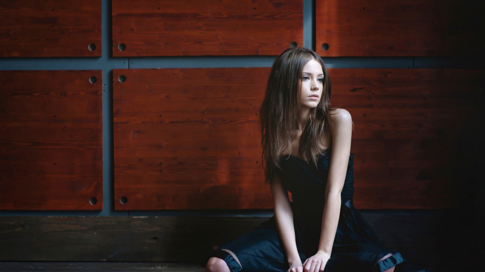 Schönes Mädchen in Gedanken an morgen vor dem Hintergrund aus dem Fenster einer großen Metropole