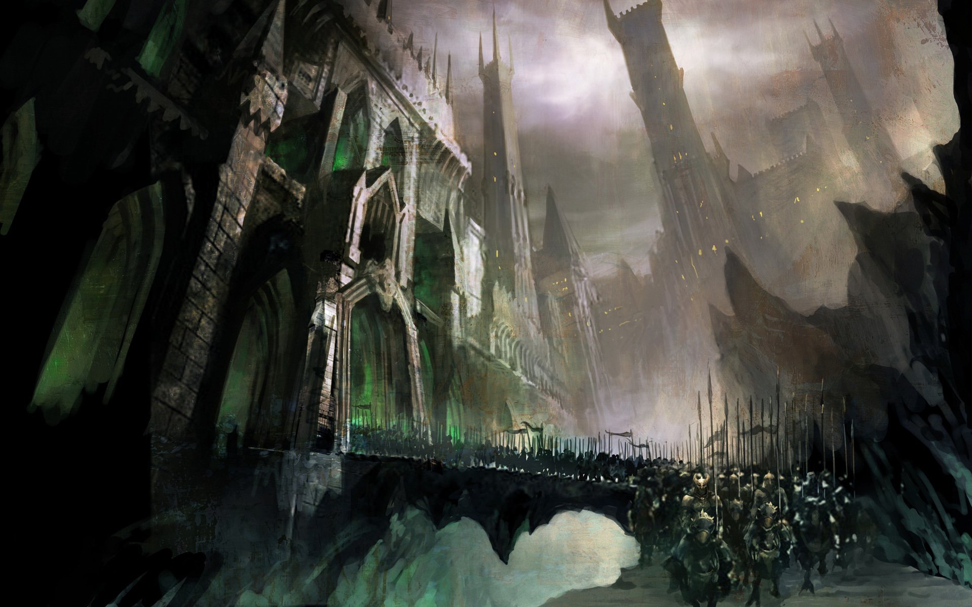 Ein düsteres gotisches Schloss im Nebel