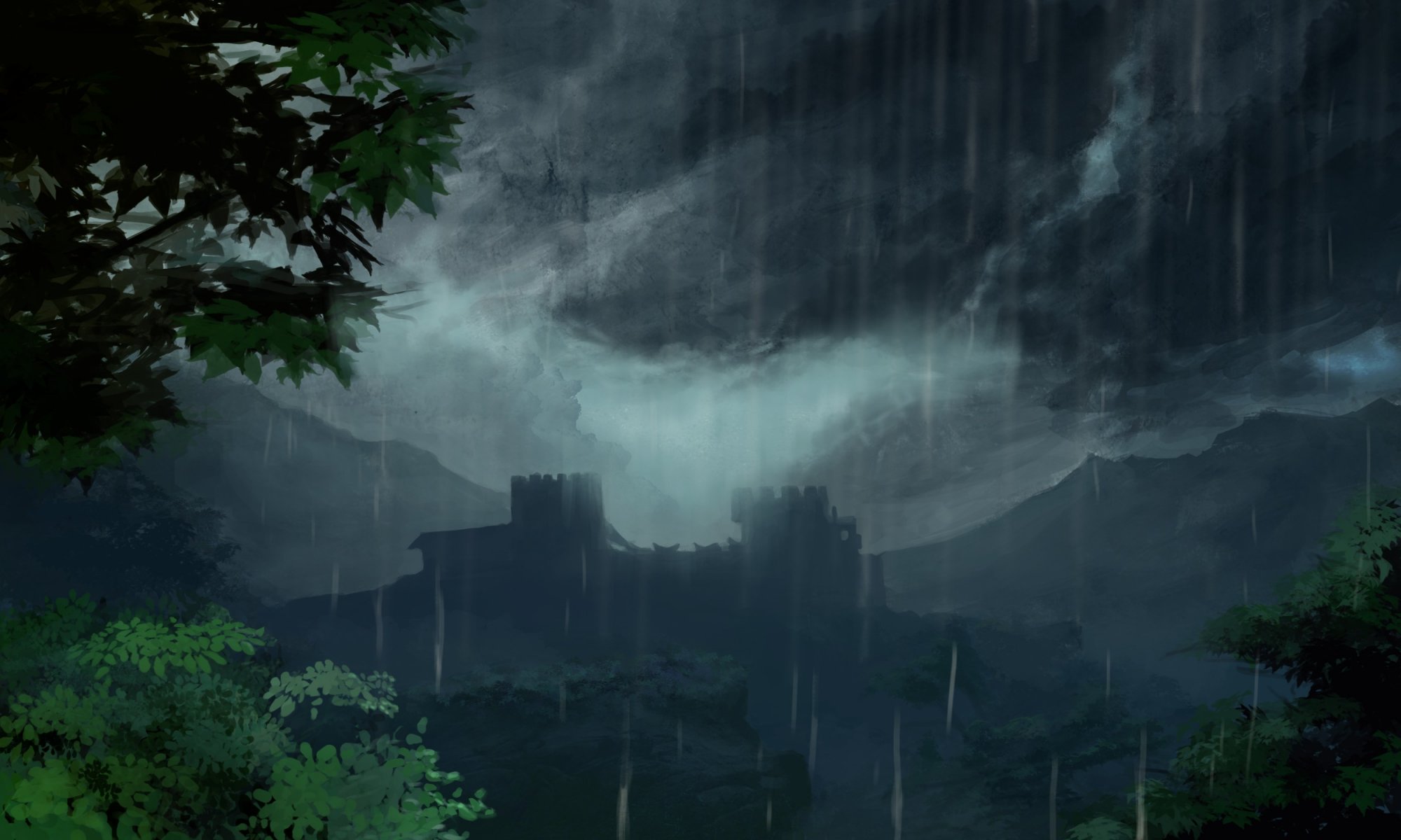 Das weiße Monster will das Schloss zerstören. Füchse unter den Füßen des Monsters