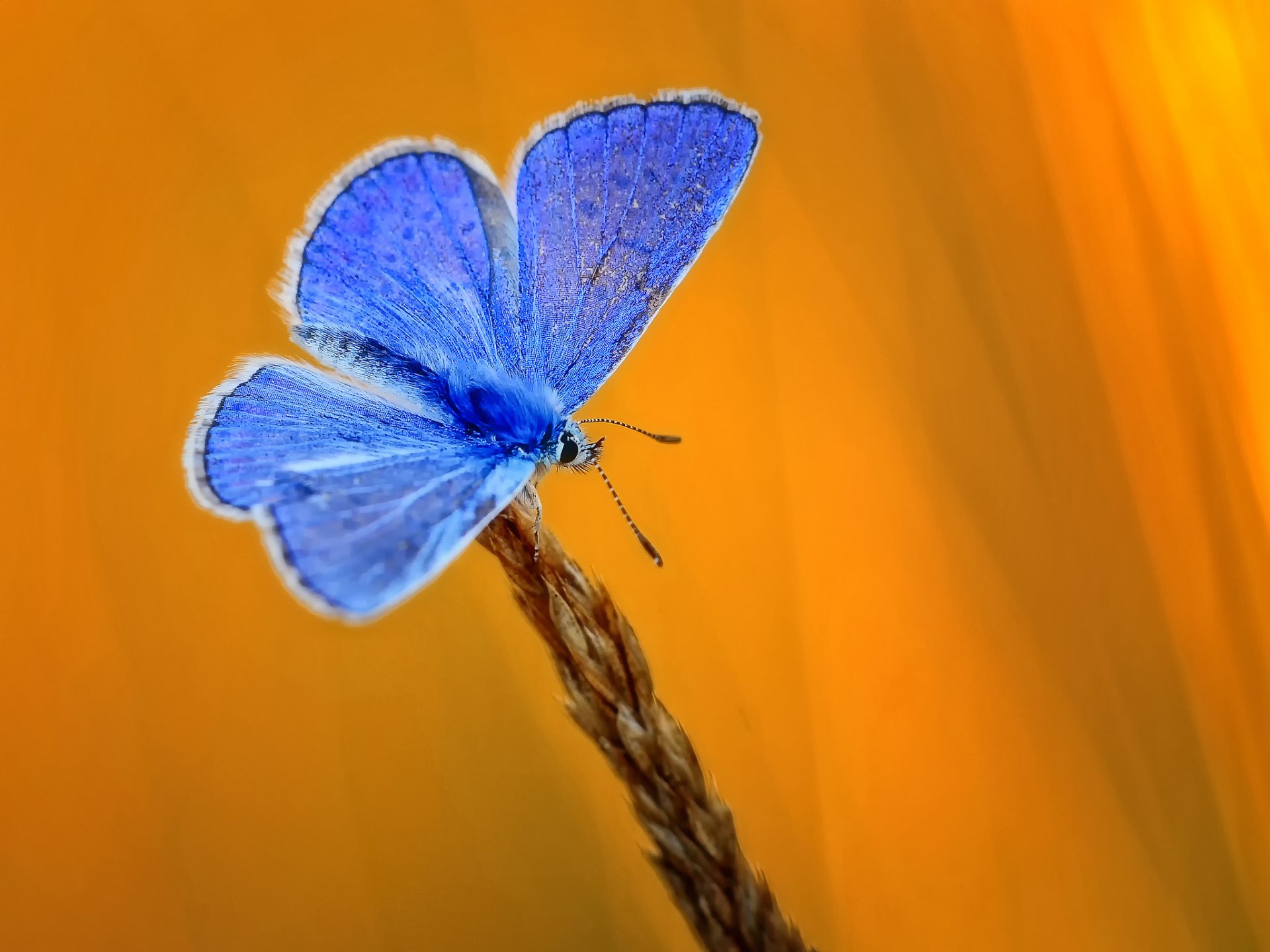 Ährchen mit blauem schmetterling auf gelbem hintergrundÄhrchen mit blauem Schmetterling auf gelbem Hintergrund