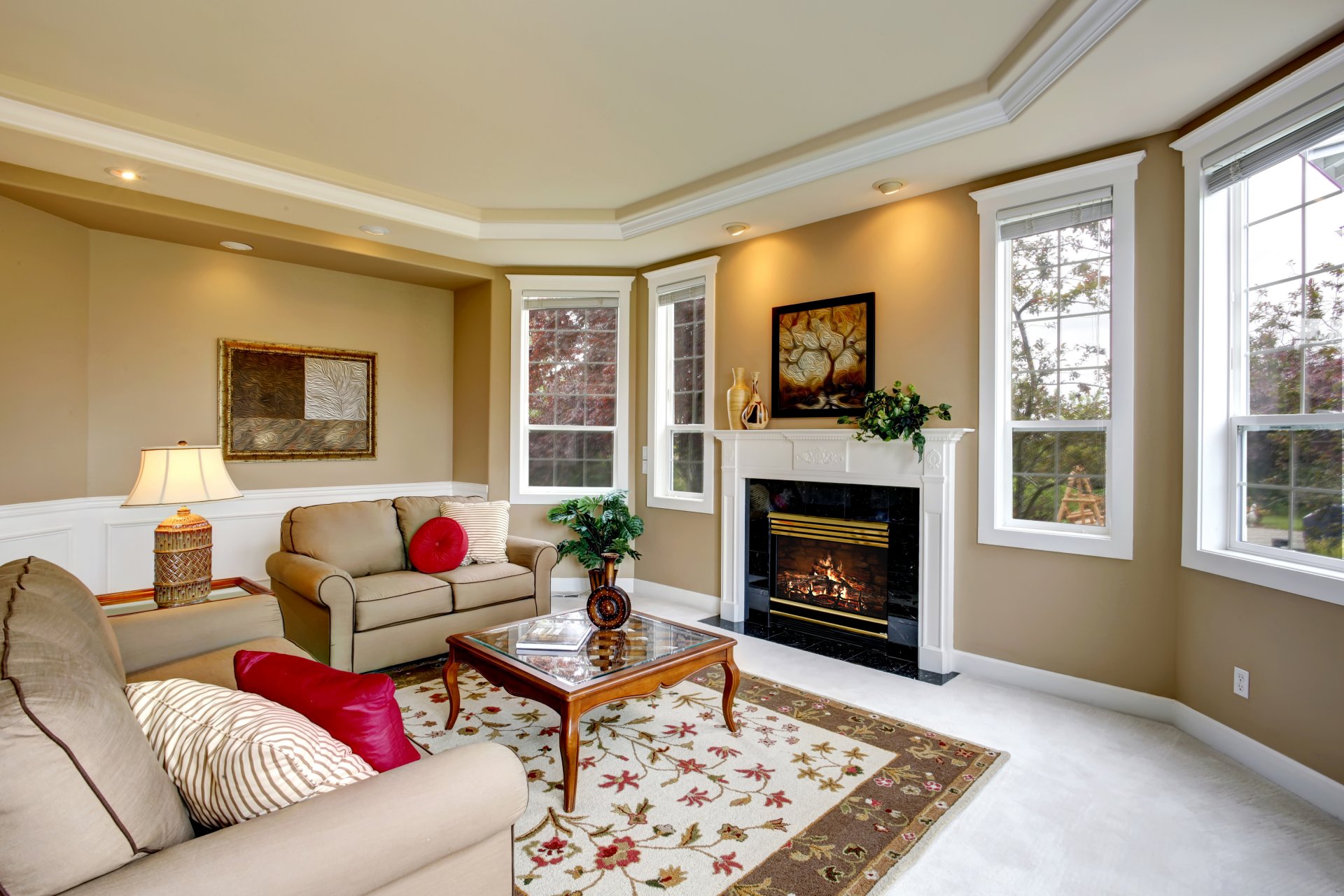 Modernes Interieur im skandinavischen Stil mit Kamin